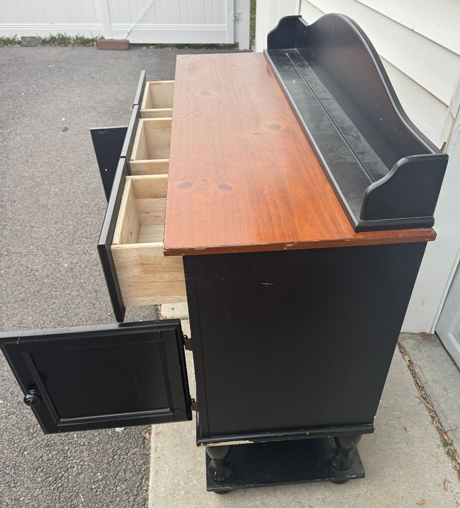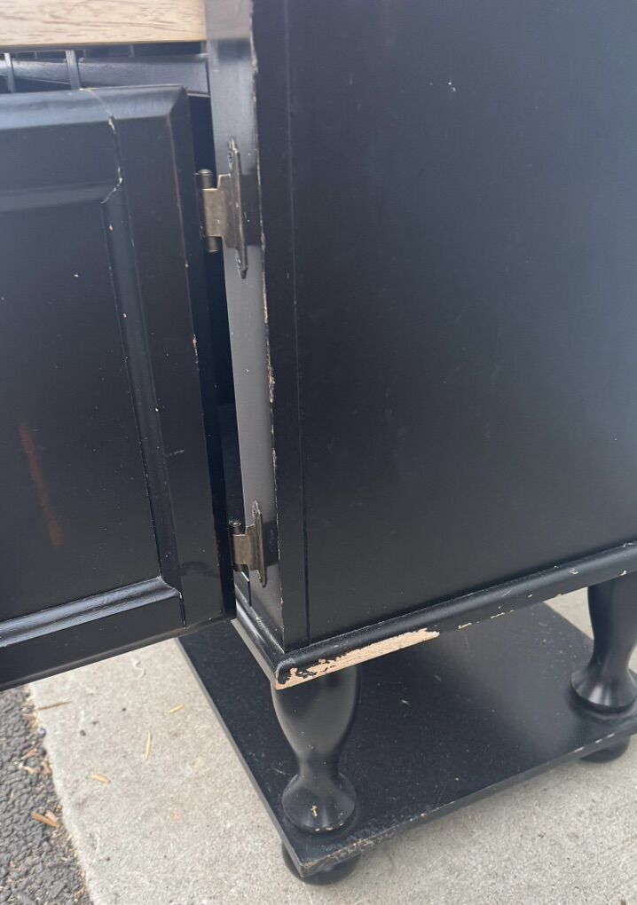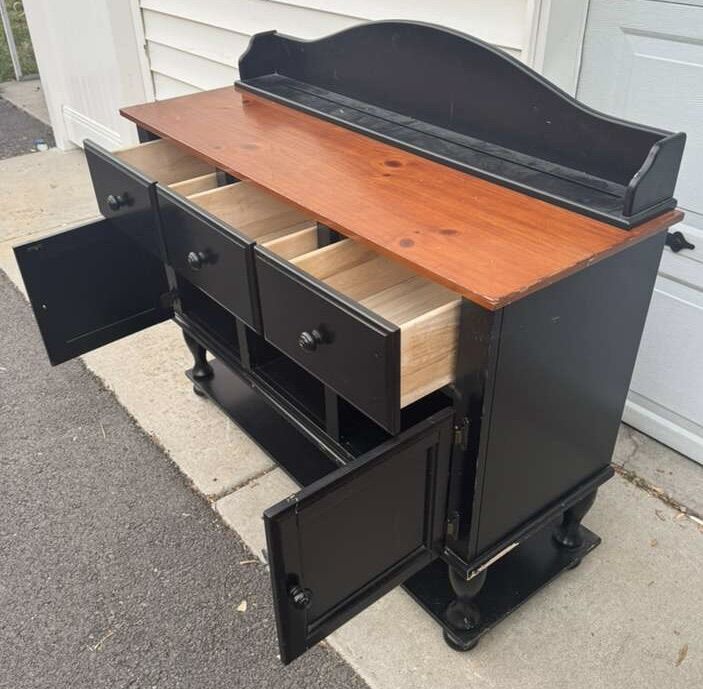 VenmoCute buffet table! See pic for damage. Drawers work well. Willing to deliver for $50.