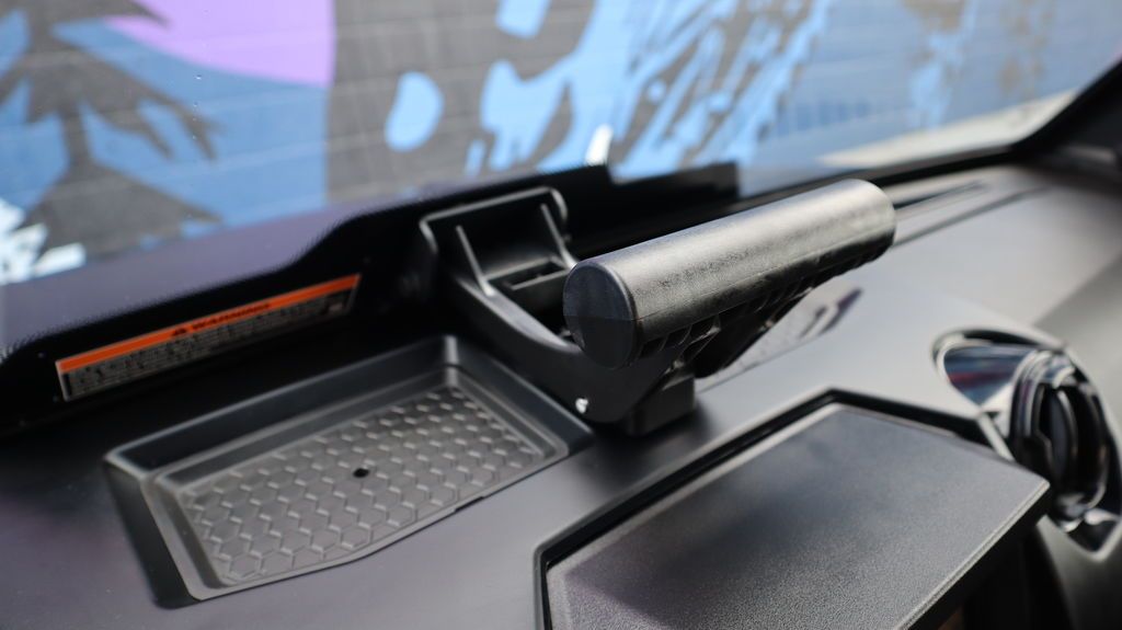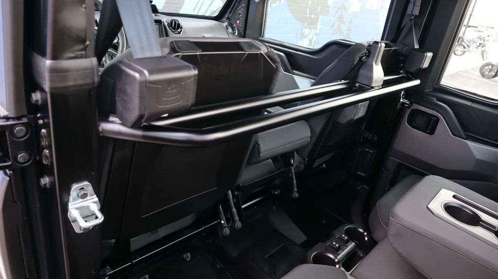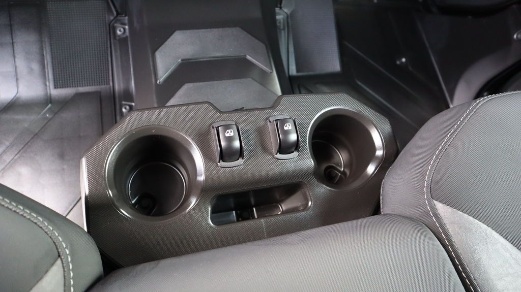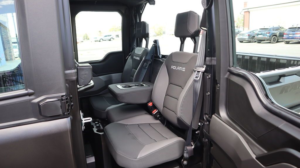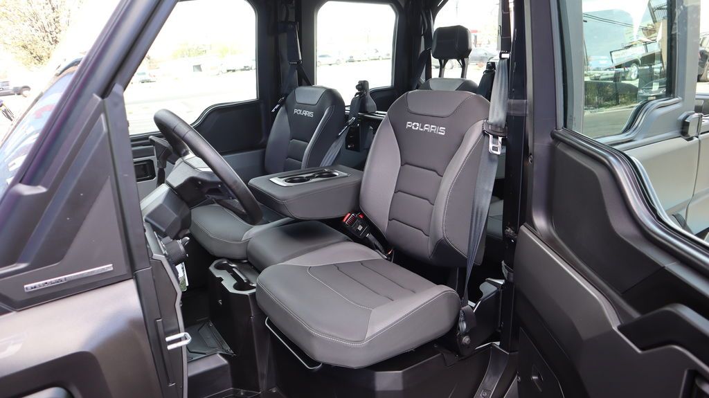 Enjoy 2 inches more leg room than many full-size UTVs, easier entry and exit, and adjustable seating with a telescopic steering wheel for a tailored fit. Contoured seats with added bolstering support every rider, while the center seat flips down into an armrest with extra cupholders.