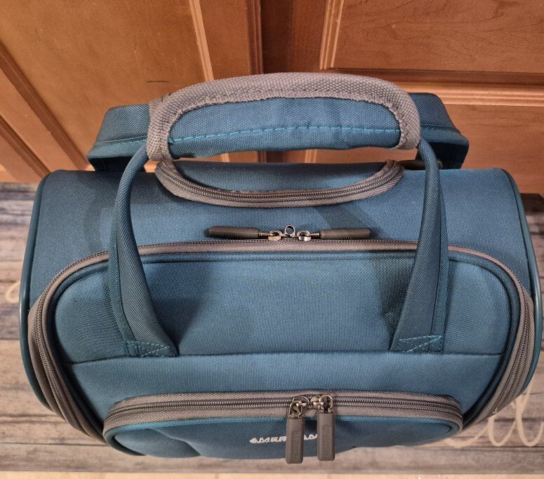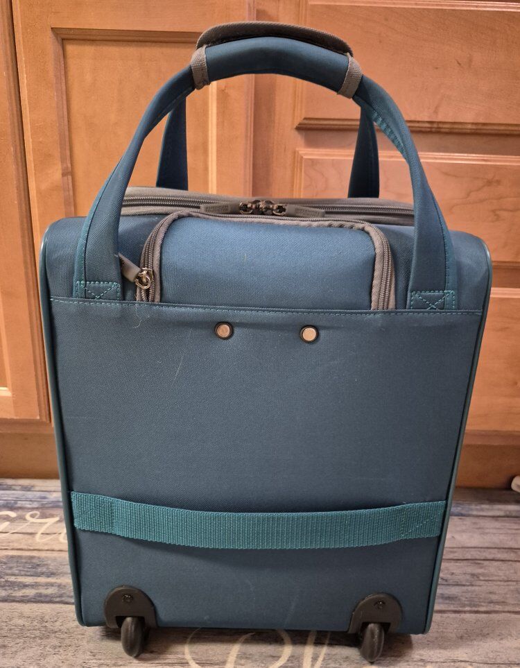 This is a personal-item size luggage bag 16.5"X13.8"X8"