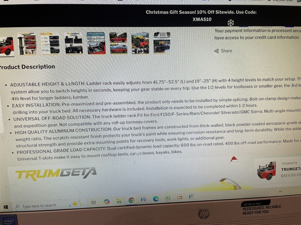 this is a new TRUMGETA Universal Adjustable Truck Bed Rack for Full Size Trucks 600 LBS with Side Bars has been damaged but repaired all aluminum retails for over 400