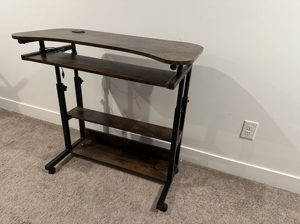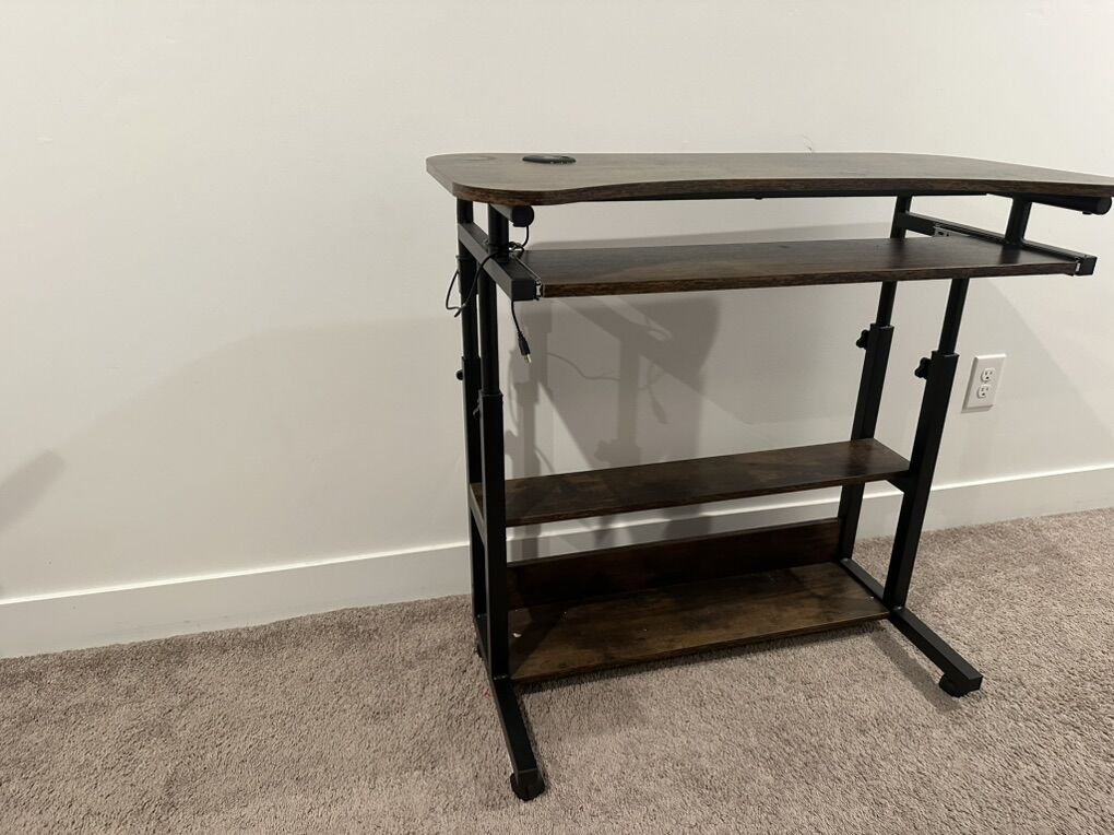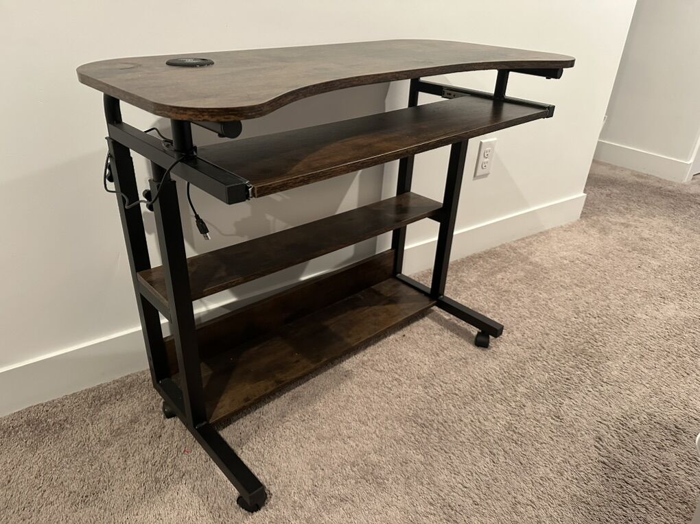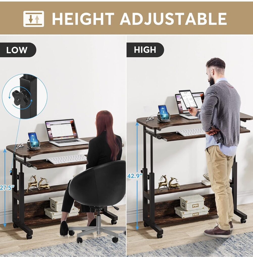 Portable Desk with Power Outlets, Height Adjustable Side Table Sofa Couch Bedside Laptop Computer Cart with USB Charging Ports, Mobile Small Standing Desk with Keyboard Tray.