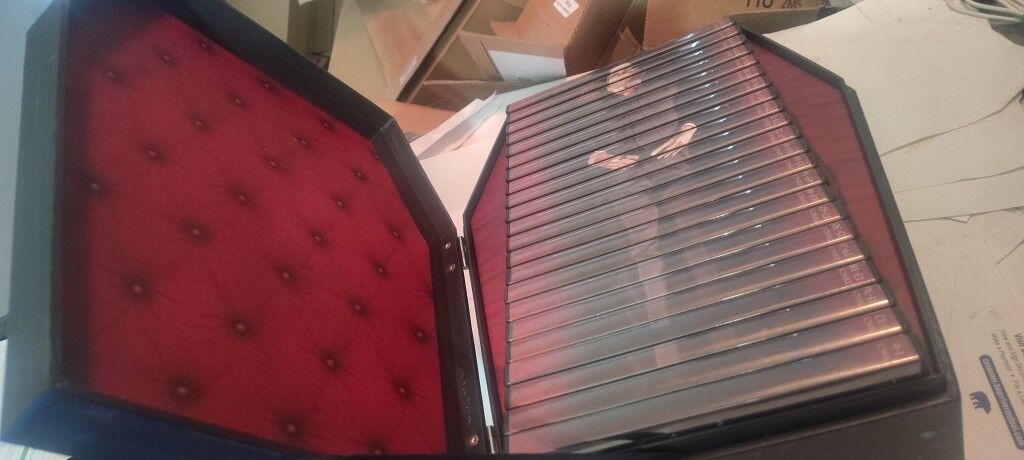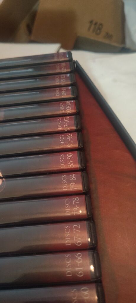 this is the complete dark shows series in mini coffin case. well cared for item. coffin case in very good condition. dvd cases and dvd's in very good to new condition. many of the discs are in new condition and have not been played. there are a total of 131 dvd's in this boxed set.