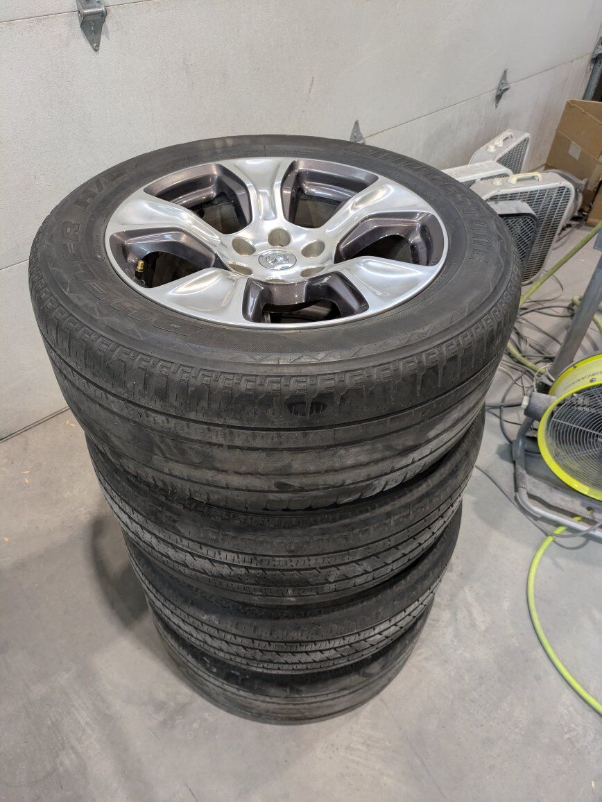 VenmoI have 4 Ram 20" wheels, they have polished aluminum faces and charcoal paint in the barrels. The tires need to be replaced, and there is a little bit of curb rash. $200 OBO