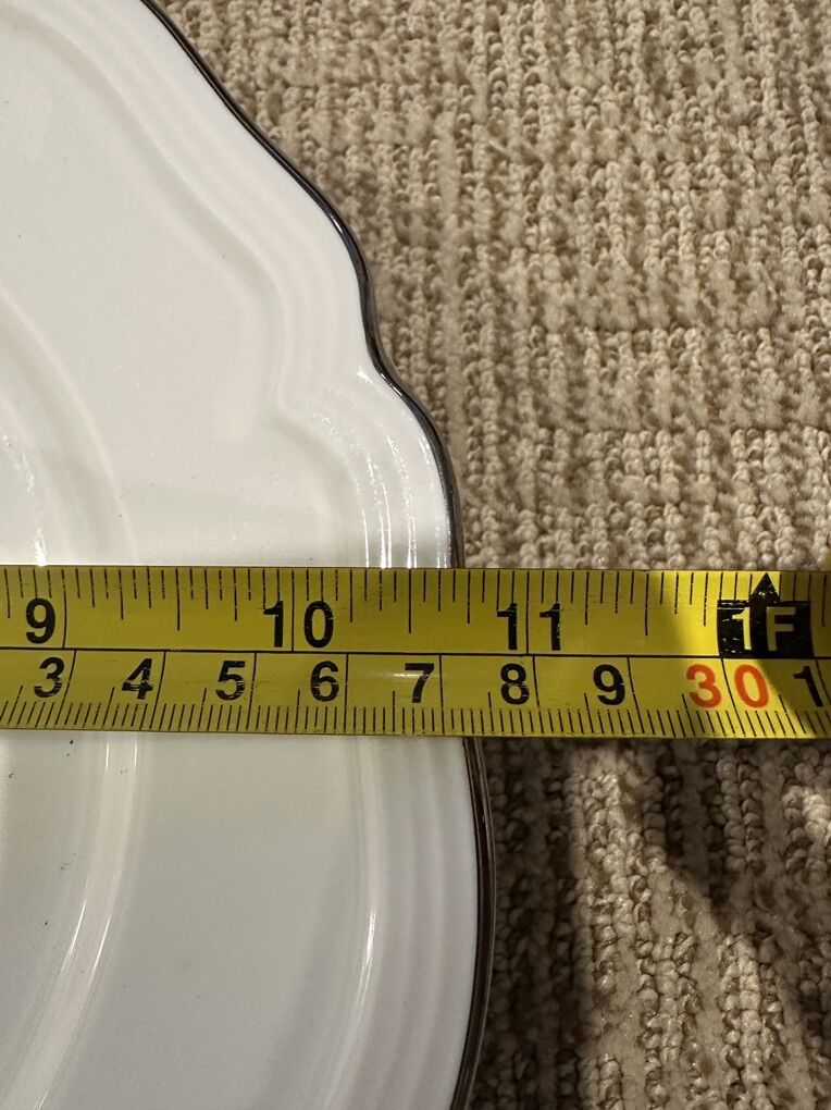 Anthropologie Black bird brand scalloped dinner plates with silver trim this are new