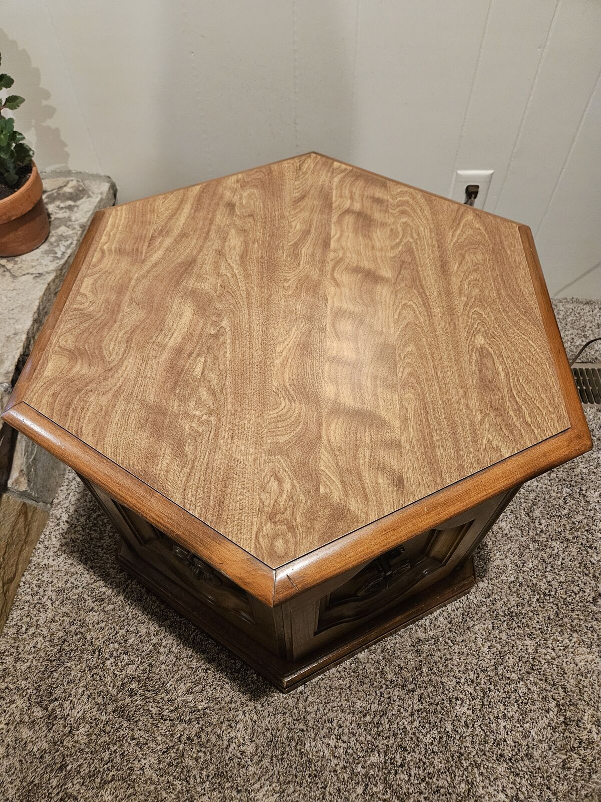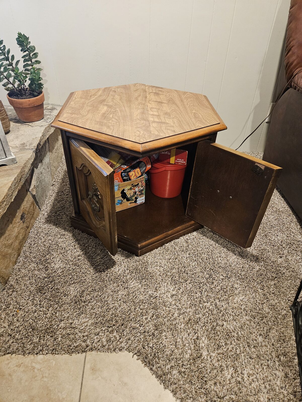 Vintage rnd table and antique brass lamp