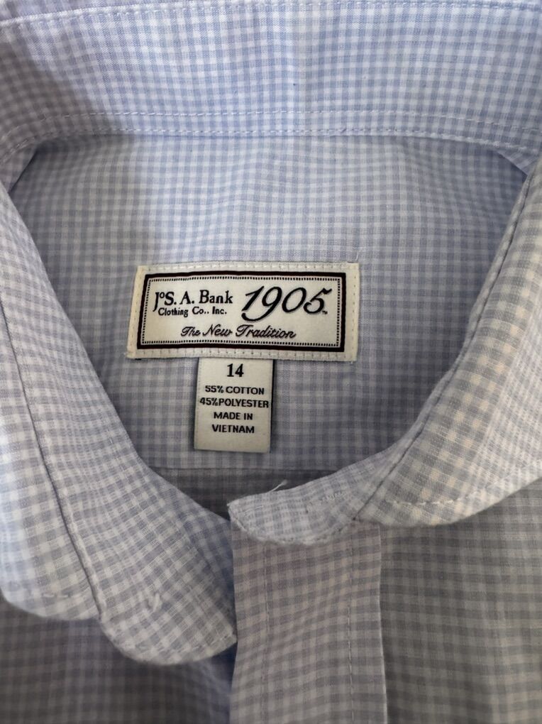 Jos A Bank Dress Shirt Boys Size 14 Blue Great Shape