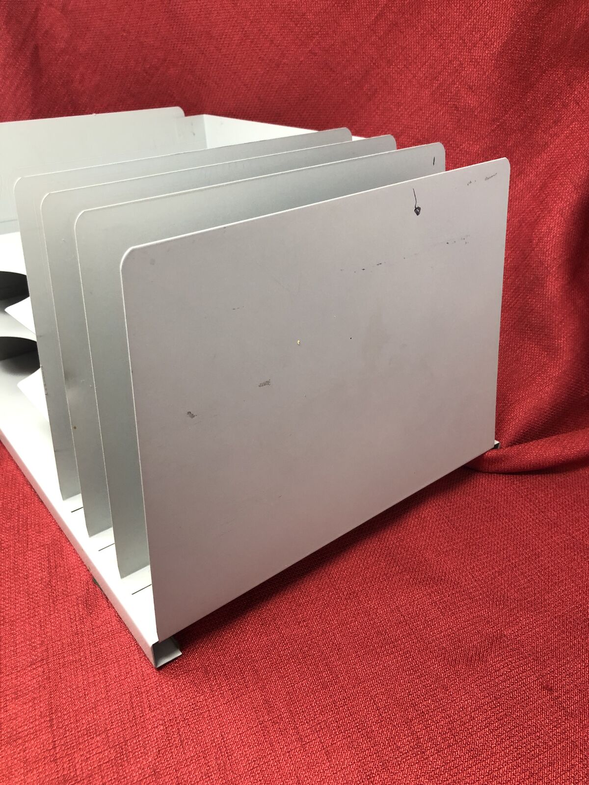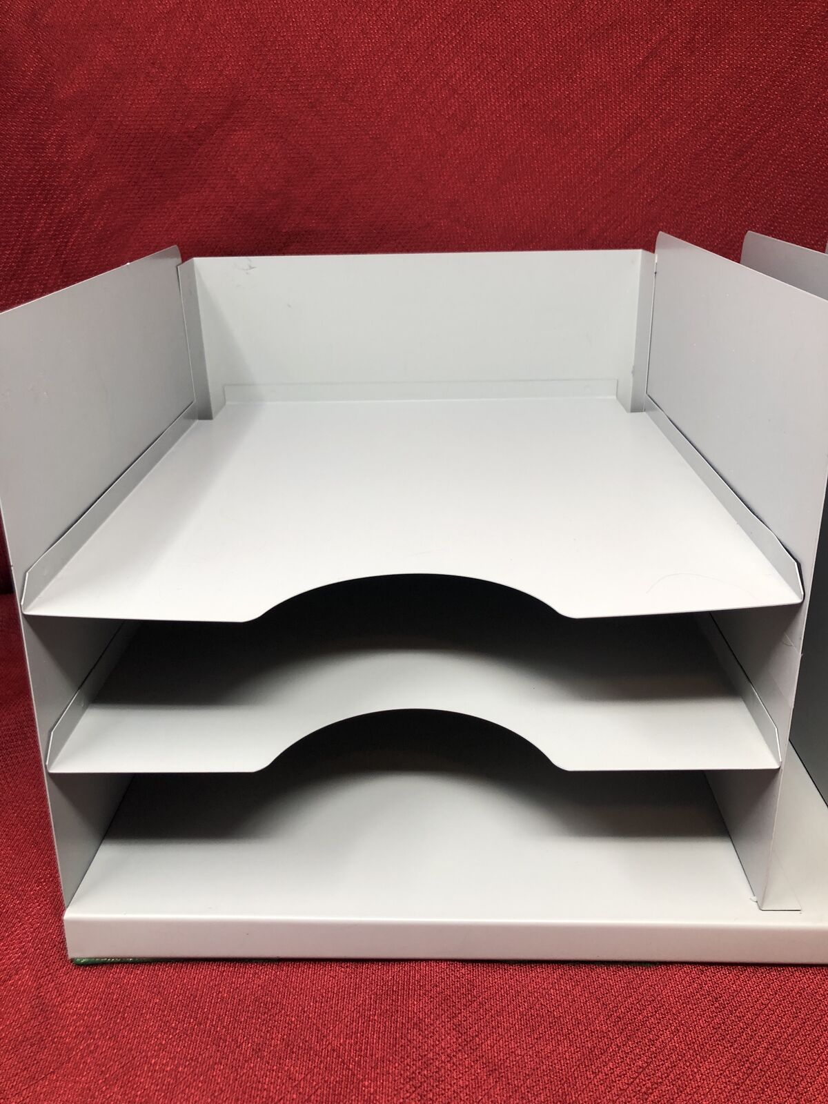 VenmoClassic vintage gray metal desk organizer featuring a functional, minimalist design. Includes two curved letter trays on the left and a multi-slot file sorter on the right—perfect for organizing mail, documents, folders, or notebooks.