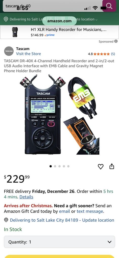 Really nice Tascam linear line recorder in line new condition! Comes with original box! These are currently 229.99 on Amazon right now as shown in photos! Do t pay retail prices, call Dustin instead at 801-205-3404, I need it gone!