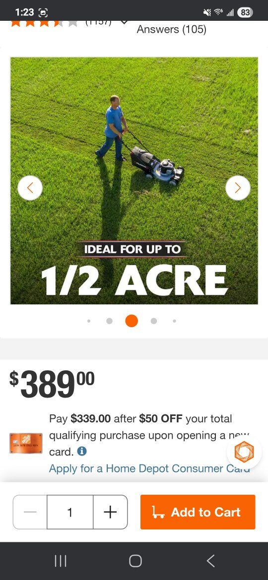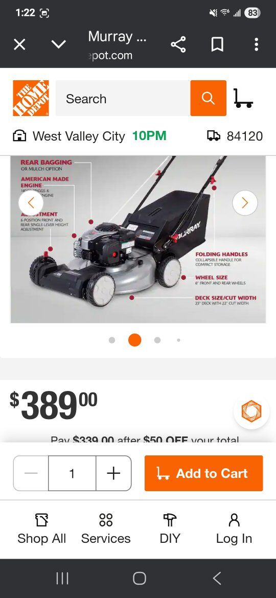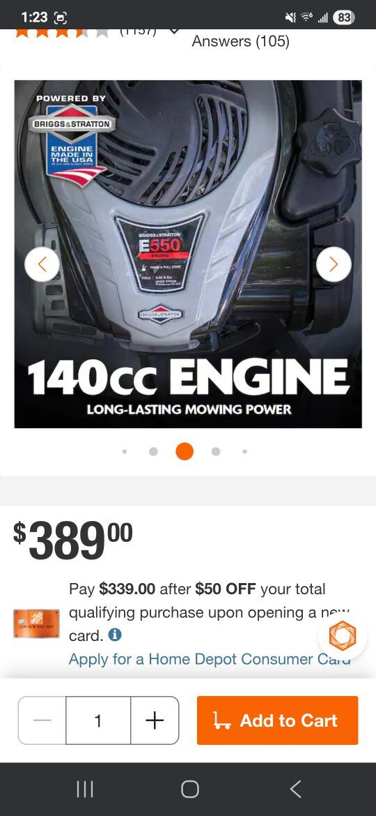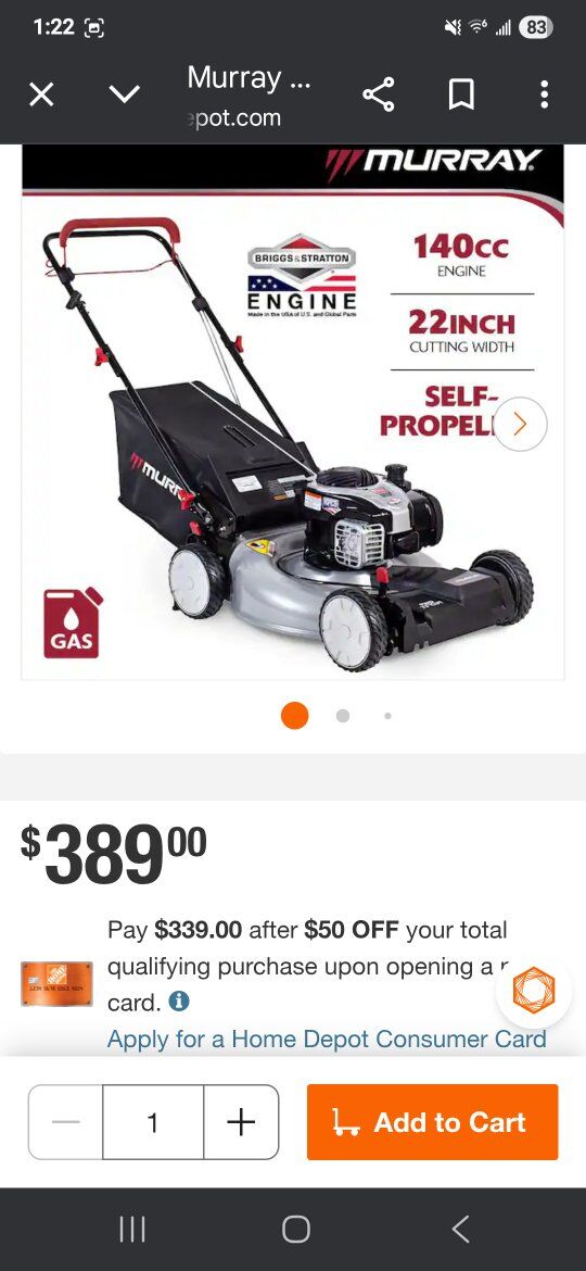 I have one brand new $399 Murray 22in 140 cc Briggs&Stratton Lawn Mower