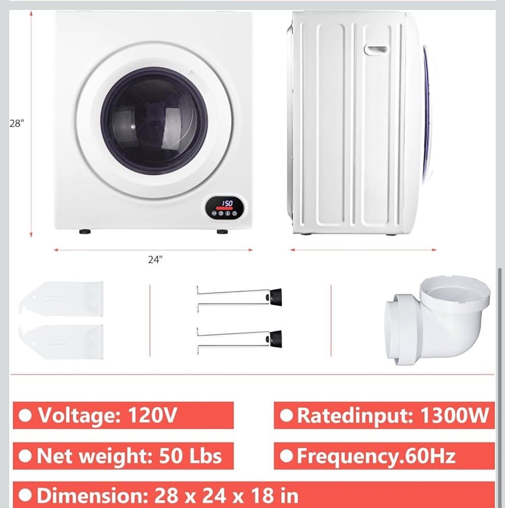 This has a smaller capacity of 2.65 cubic feet. Please understand that this is a much lower capacity than you are used to with a standard dryer. It also is a much lower power dryer than a conventional regular sized unit, so it will take longer to dry.