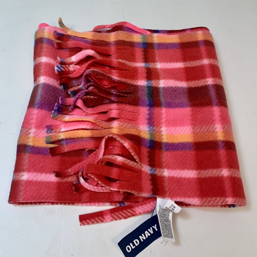 VenmoNWT Old Navy brand super soft warm performance aka polar fleece scarf in pink, red, yellow & purple plaid, new condition, “one size” 70 inches long including fringe (thats 5.83 feet) so it fits any body size. Send me a message if you’re interested in purchasing it.