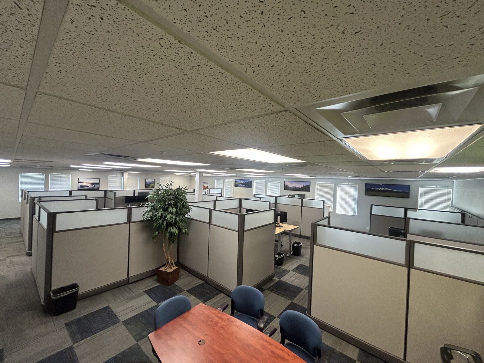 Space is approximately 3,000 square feet, on the main floor of the building. The price is $4,200 per month, includes cubicles if desired. Furnishing options are available -- ask for details. In addition to a large open space, the space includes two individual offices, a closet, and a kitchen.
