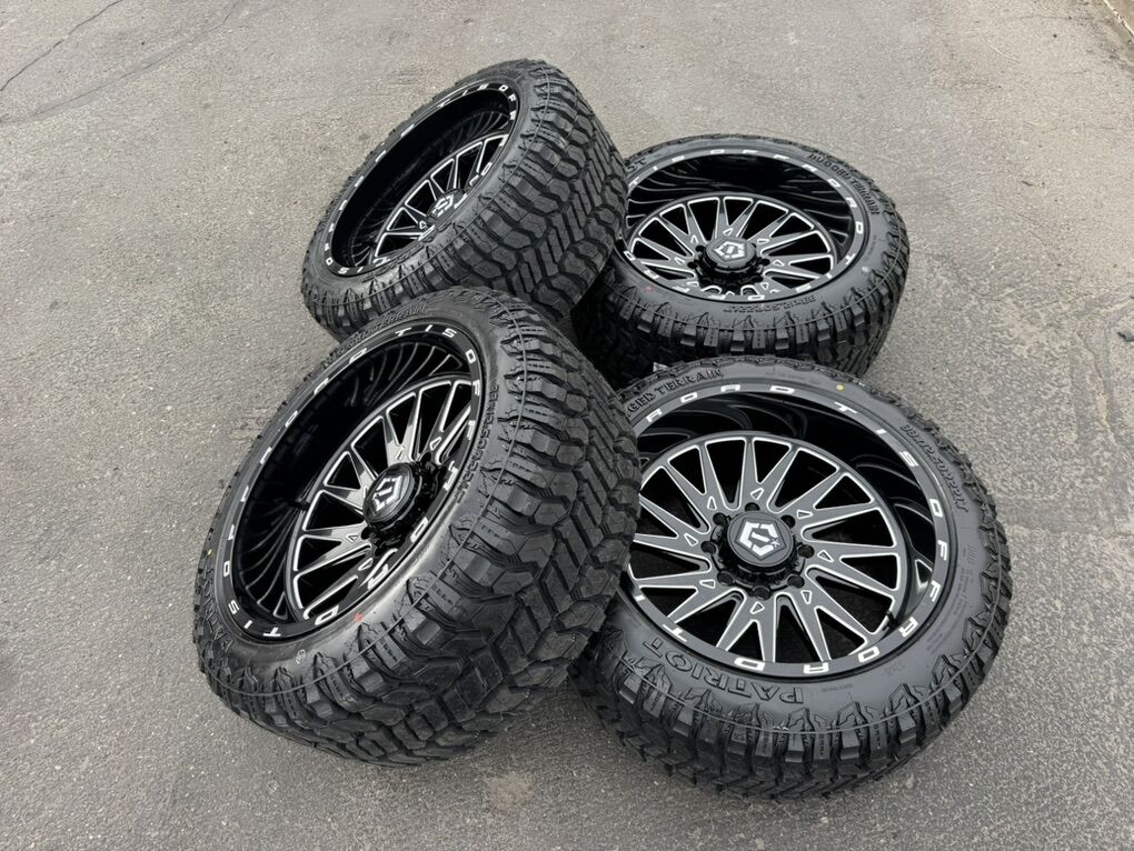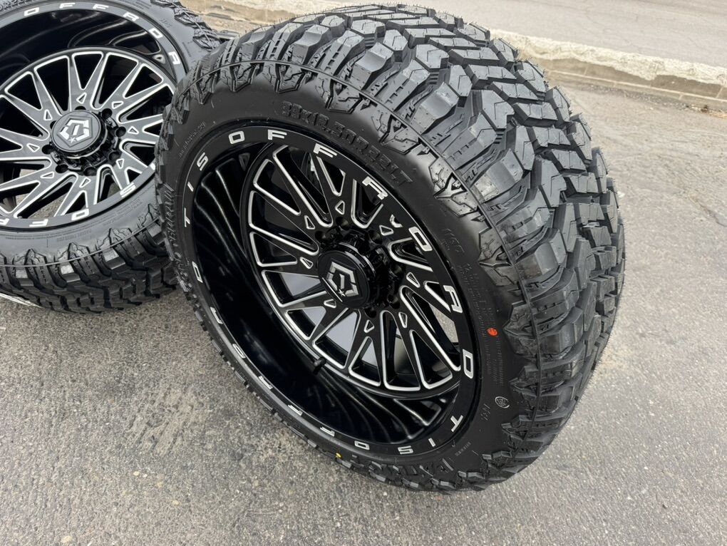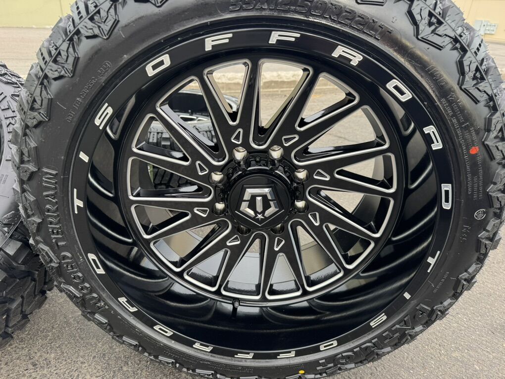 ApplePayLocated in SLC Brand new package! 22x12 TIS 547BM -44 ET offset wheels mounted and balanced on load F 12 ply 33x12.50r22 Patriot RT tires. 8x180 bolt pattern, these fit 2011 and newer chevy silverado and gmc sierra duramax trucks. Huge Savings!