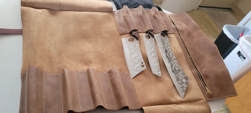 Here I have a custom made Hidelabs knife roll with 3 never used knives.