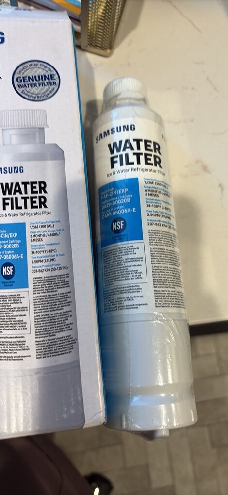 ZelleBrand new Samsung water filter for Samsung refrigerator. One left in box. We sold the fridge and have one u opened filter left. Cartridge DA29-00020B