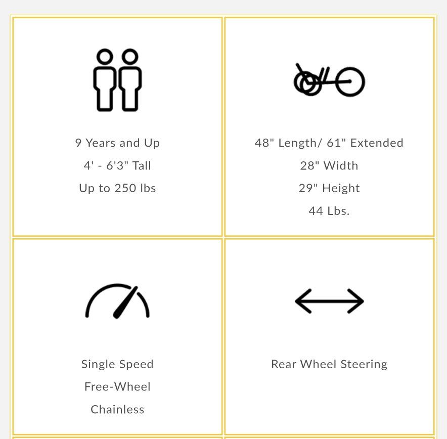 Perks: Comfortable, low-impact riding Stability (no balancing anxiety) Adjustable fitSmooth rides and good vibes Good for quick trips to the store, easy exercise for anyone or just good old outdoor fun!