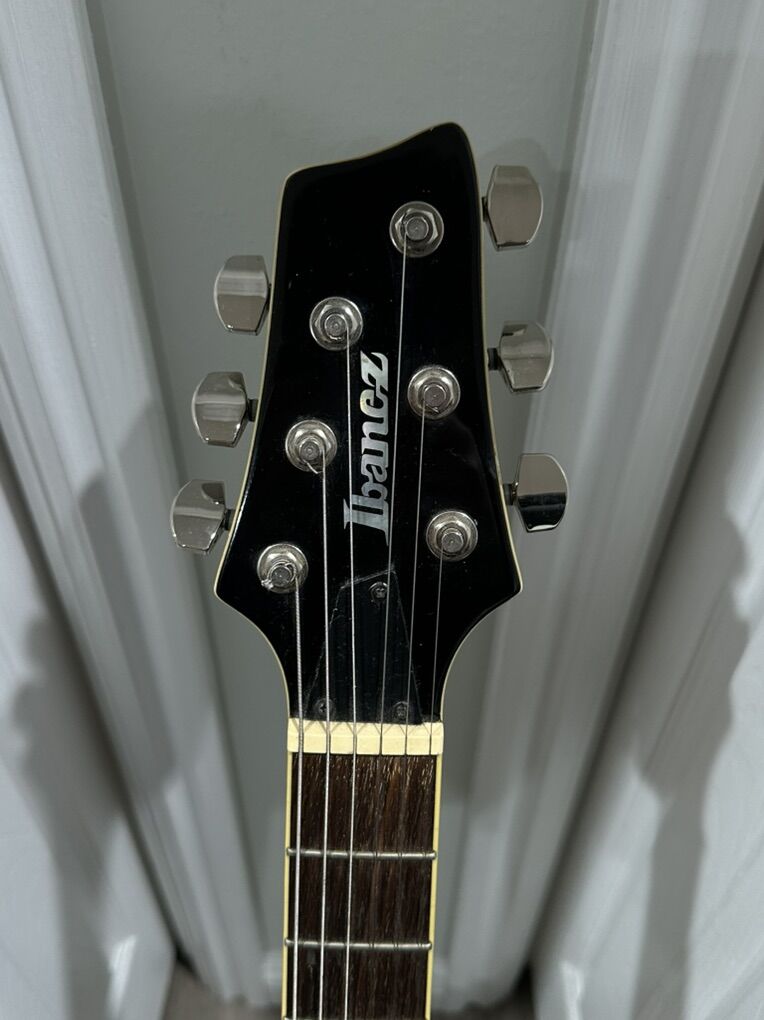 Body: Thick mahogany body with a quilted maple top veneer. Neck: 3-piece set-in mahogany neck (providing enhanced sustain), with a sculpted neck heel for comfort. Scale Length: A slightly shorter 25.1 scale length, making it easier to play. Fingerboard: Rosewood fingerboard with binding and specific inlays that varied by year (e.g., heartbeat inlays on the similar SZ520FM model or dot inlays). Frets: 22 medium frets. Pickups: Pre-2005 models: Ibanez-branded humbuckers. Controls: Individual volume controls for the neck and bridge pickups, a master tone control, and a 3-way toggle switch. Bridge: Gibraltar III fixed bridge with a string-through-body design for better sustain and stability. Tuners: Ibanez die-cast non-locking tuners.