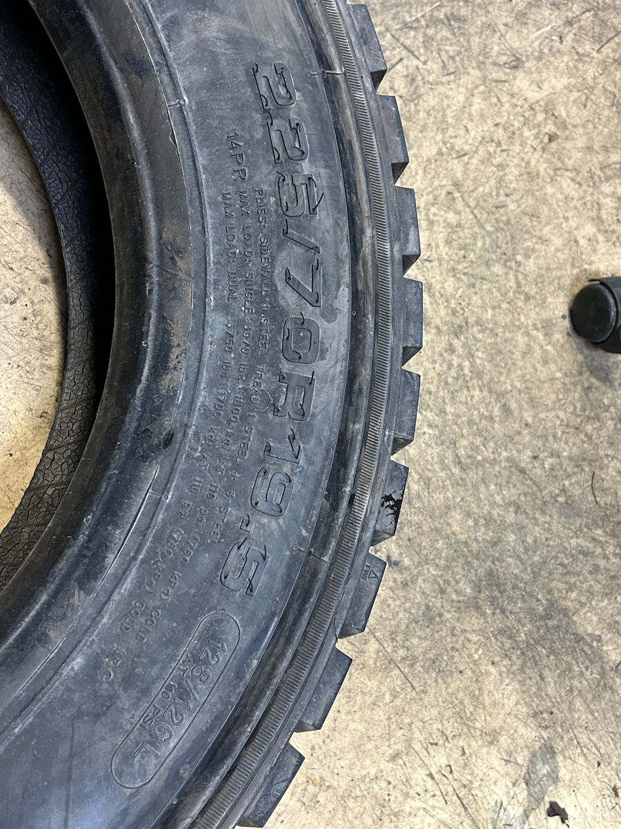 NOS DYNATRAC DT340 BSW 225 70 19.5 128/126L 14PLY COMMERCIAL TIRE 96051