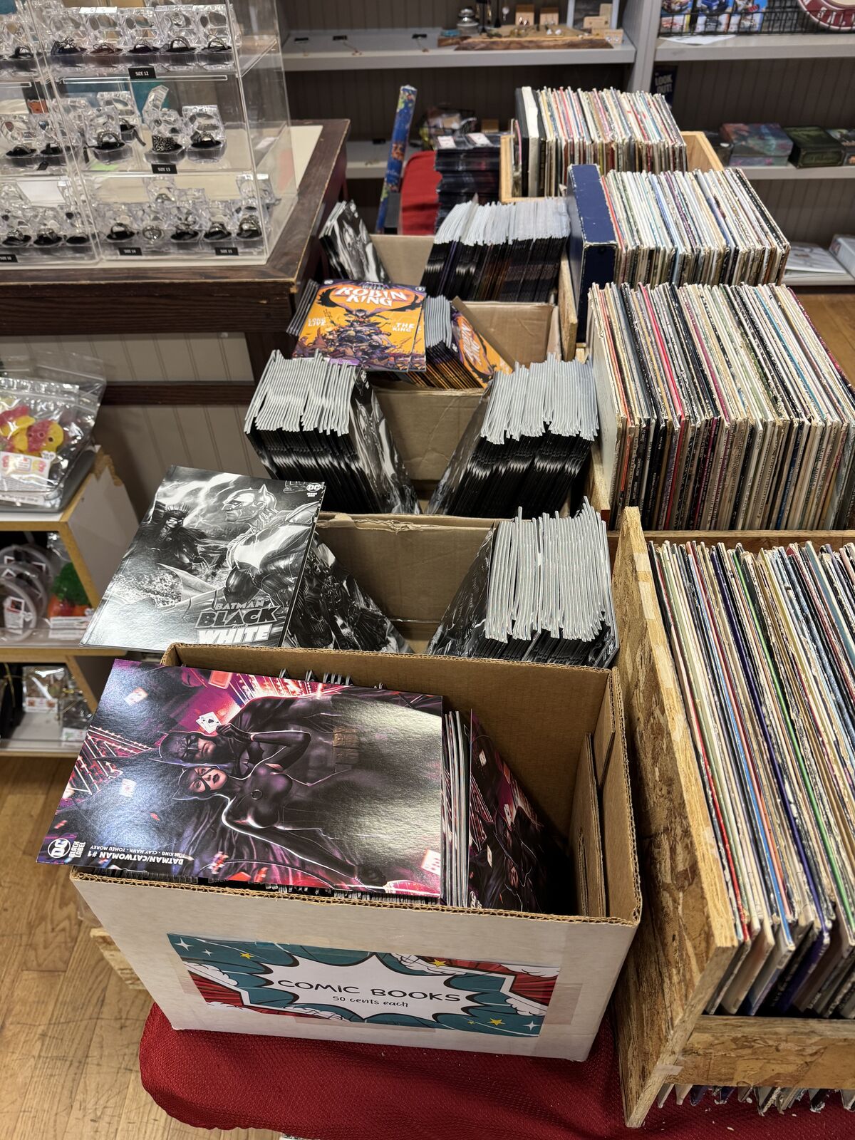 Come check out our store. One half is dedicated to used and rare books, while the other half showcases an eclectic mix of local vendors. Our vendors sell a variety of goods, including 3D prints, handcrafted jewelry, freeze-dried candy, Pokémon cards, polished stones, Funko Pops, custom water bottles, mini figures, dice sets, ties, and even goat milk soap. With new vendors joining regularly, there's always something new to discover. Contact us if you would like more information on being a vendor.