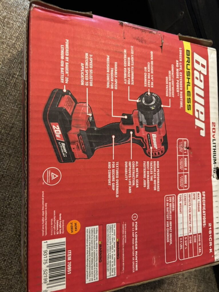 Wow, brand new in the box Bauer impact with battery and charger! This exact set up is 69.99 at harbor freight right now as shown in photos! Don’t pay retail prices, call Dustin now instead at 801-205-3404. I need it gone!