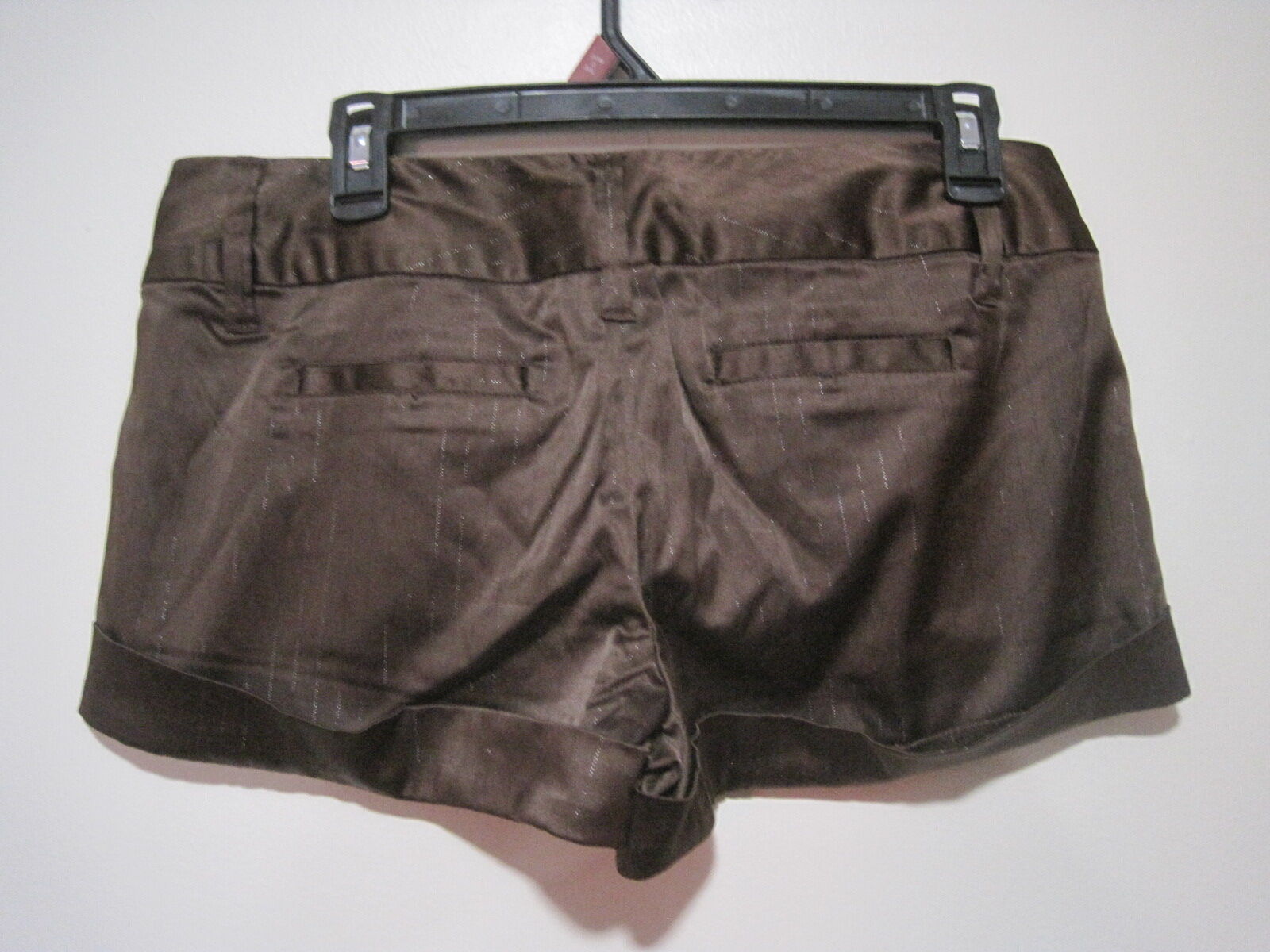 The Charlette Russe Women's Brown Hot Pants Shorts in size 9 are perfect for a summer wardrobe. These cuffed Y2K style shorts feature a low rise and a 2.5 inch inseam, making them ideal for a casual day out or a party. Made from a blend of polyester, spandex, and cotton, these lightweight and comfortable shorts have a zip closure and a 4-pocket design. Easy to care for with machine washable instructions, these hot shorts in a solid brown color offer a trendy fit for everyday wear.