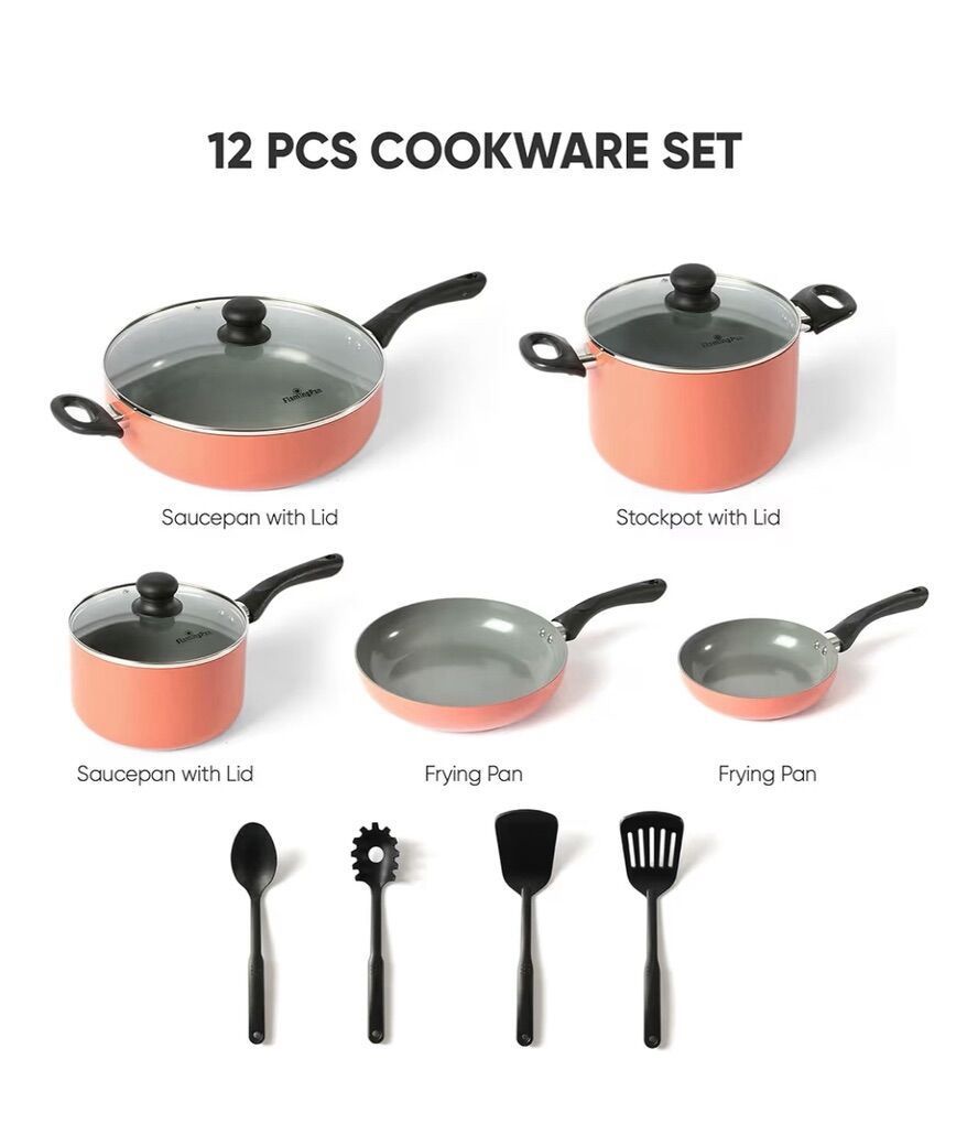 12 Piece Nonstick Pots and Pans Sets,Kitchen Cookware with Ceramic Coating,Dishwasher Safe,Frying Pan Set with Lid, Induction Pots and Pans with Clearance,Suitable for Any Cooktop