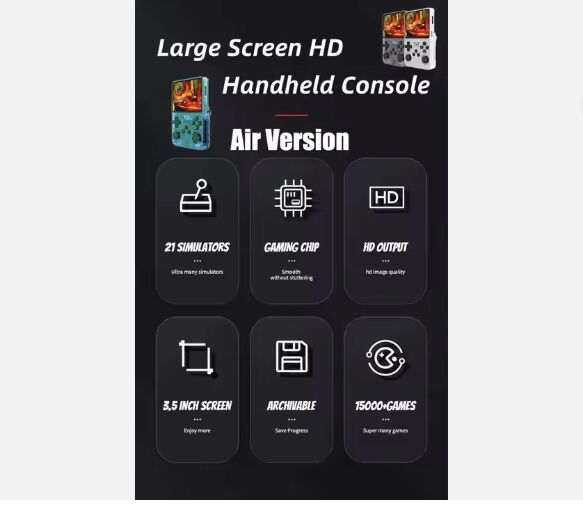 Massive Game Library: Preloaded with 15,100–22,000 retro games – from arcade hits to classic console favorites. High-Capacity Storage: 64GB of built-in memory to store all your favorite titles. Compact & Portable: Size: – perfect for travel or on-the-go gaming. Powerful Performance: Equipped with an efficient ARM CPU and running on a Linux OS for smooth gameplay. Crisp Visuals: 3.5 color display with 640x480 resolution – ideal for pixel-perfect retro graphics. Long Battery Life: Built-in 3000mAh rechargeable battery delivers hours of uninterrupted gaming fun. Lightweight Design: easy to carry, never weighs you down. Languages: Support Multiple Languages.