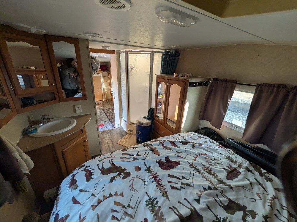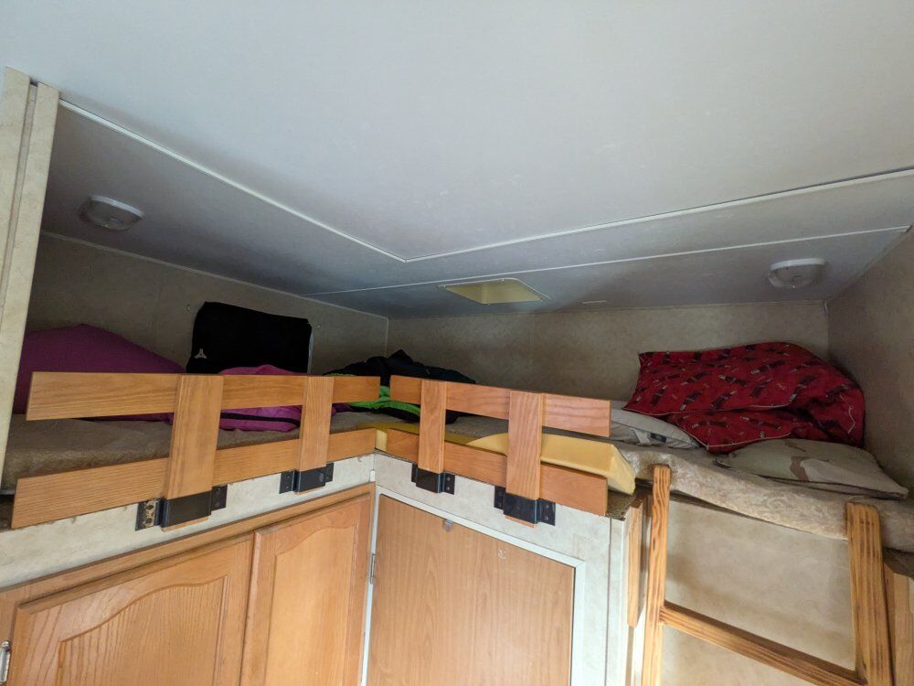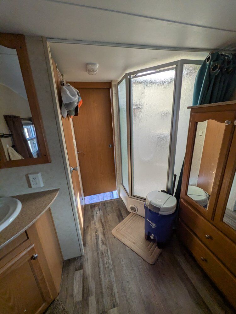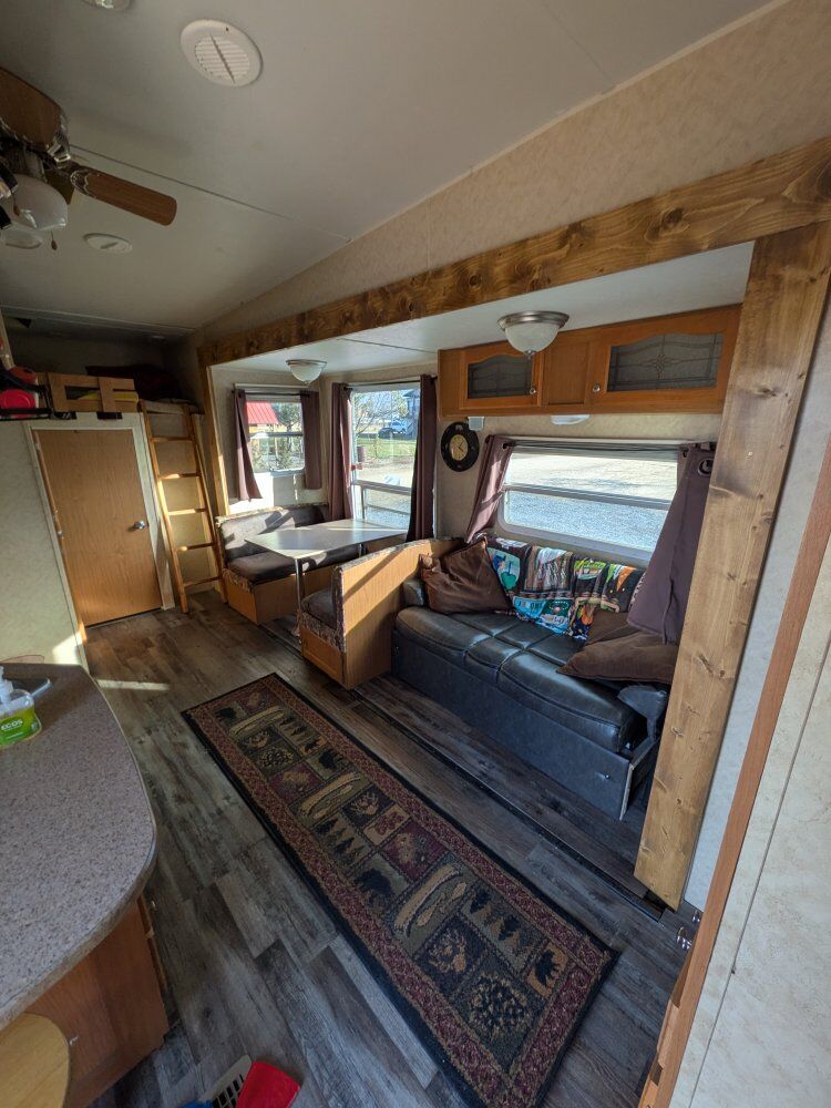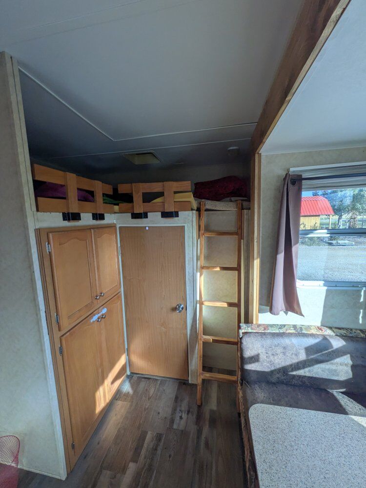 2006 28ft long bunk house. everything works . has solar on the roof that keeps the batteries charged. redid the flooring a few years ago. (there are some scratches I just cover up with the rug ) We are a family in 10 and we sleep comfortably in this trailer! ️ has a nice largee slide out , bunk room thats separate lower upper loft sleeper. living room has a pull out couch, bed and table that turns into a bed. plenty of Storage. serious inquiries only. please call or text destree with any questions 801-690-3320