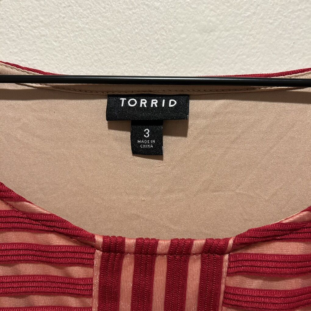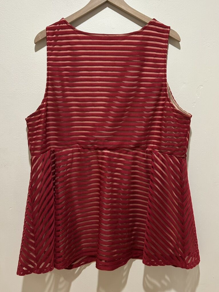 Torrid Red with Beige Under Lined Knit Shadow Striped Peplum Textured Sleeveless Tank Top Shirt - Women’s Size 3 (3X) - round neck and wide strapped - great condition - pre-owned.