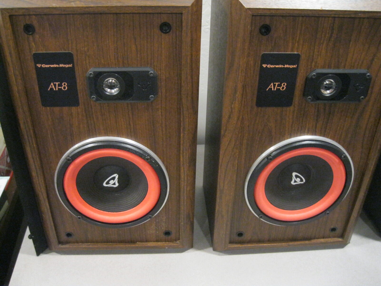 For sale is a great pair of Cerwin-Vega AT-8 home speakers. They are from a smoke and pet free home. The subwoofer surrounds have been replaced recently and they sound great and are loud enough to wake your neighbors. $200.