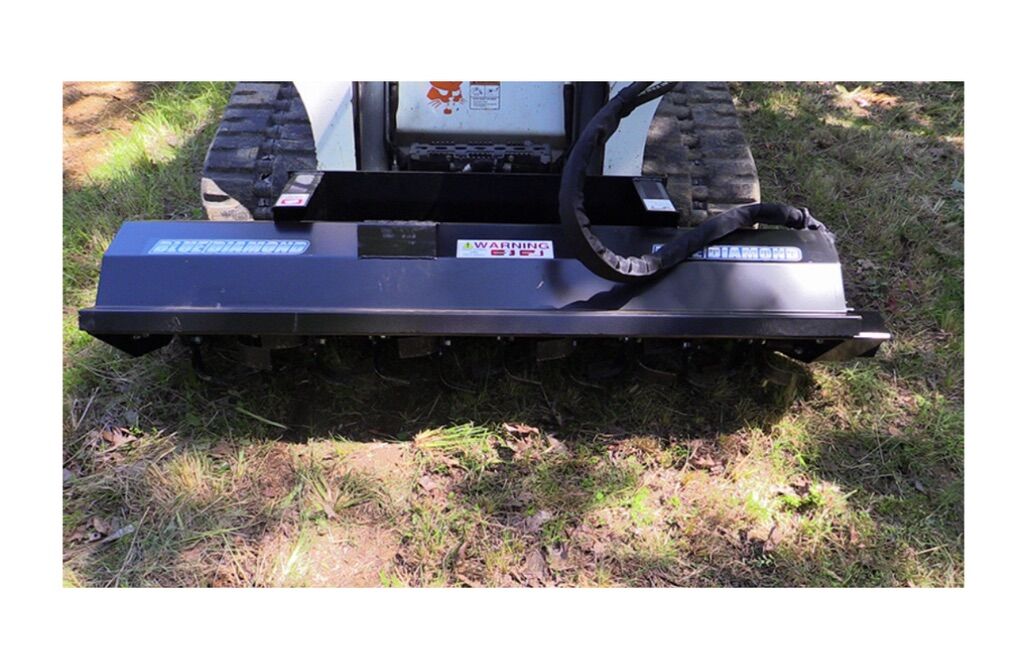 Till up to 6” deep with this Blue Diamond® Skid Steer Bidirectional Rototiller. The pivoting tines allow for maximum bite in either direction for use in forward or reverse. Our rototiller is made for heavy duty tilling with your skid steer, and it provides a level of quality you just won’t find anywhere else. This attachment has proved top of its class in rental ROI and works well on a wider selection on machines than most. This powerful direct drive motor provides more reliability than chain drive units.