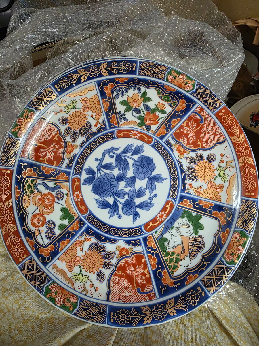 5 plates with a blue flower design and one black plate.
