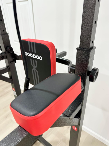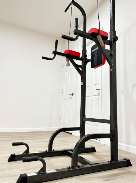 ZelleAdjustable Height and Backrest - The 11 levels adjustable height range is 71.4 inches to 94 inches with the lowest setting designed for children and 7 adjustable wide-fitted backrest. The Dip Station is more comfortable for you to do exercise and suitable for the whole family's needs at home gym.