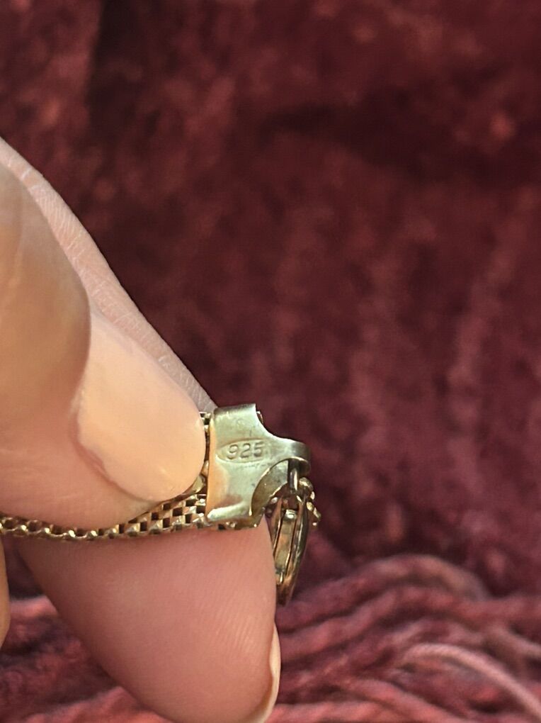 A very nice Italian Bracelet that doesn’t tarnish. A bracelet for women with a smaller wrist. intricate design-little hearts run through the center. Stamped 925 - Italy
