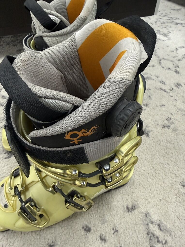 Ability Level: Intermediate-Advanced Ski Boot Flex: Medium Forefoot Width: 103 mm Liner Type: Custom Flex Index: 100 Retails for: $600 USD Size: 24.0/24.5 (US Women’s 7-8)