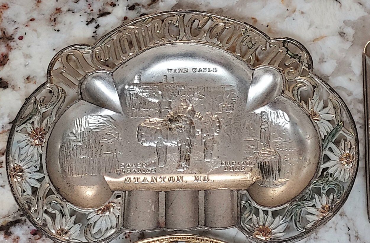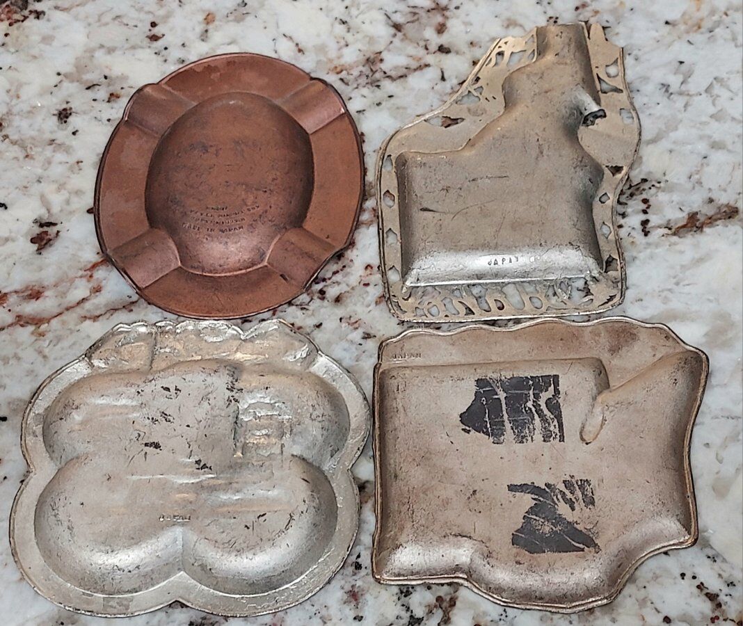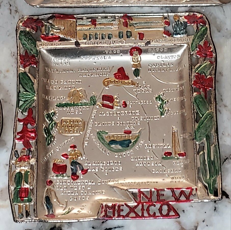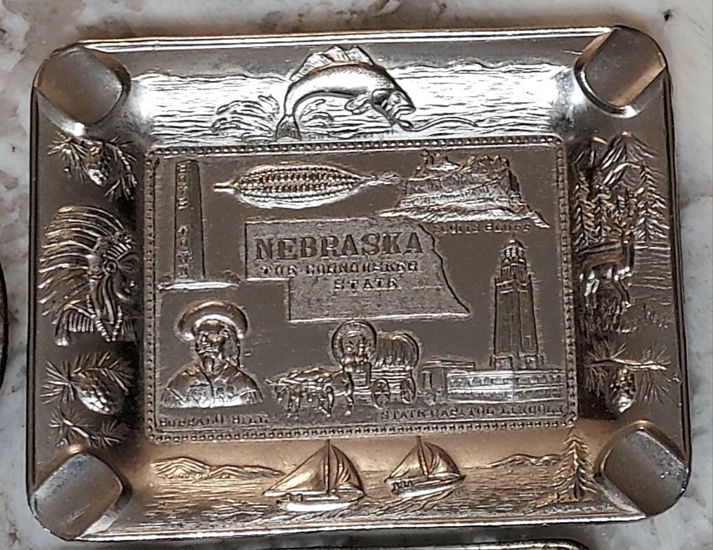 Lot of 4 metal souvenir ashtray lot, including Nebraska, New Mexico, The Ozarks and Merimec Caves, NJ. All in very good condition.