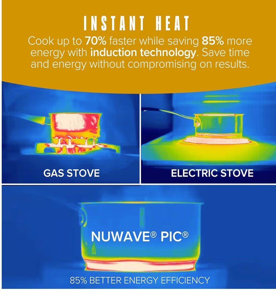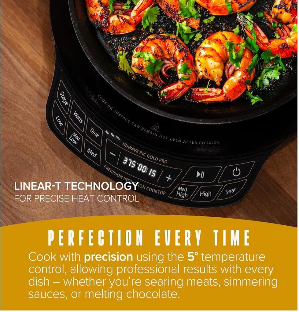 Convenient Features - New control panel, power button and improved LED display. Induction Cooking - Fast, efficient cooking technology heats cookware directly without any open flames or red-hot coils. Precise Cooking - Cook between 100°F and 575°F in precise 5°F increments. Built-In Safety - The PIC Gold Pro automatically stops cooking when the cookware is removed and will not start without any cookware present.