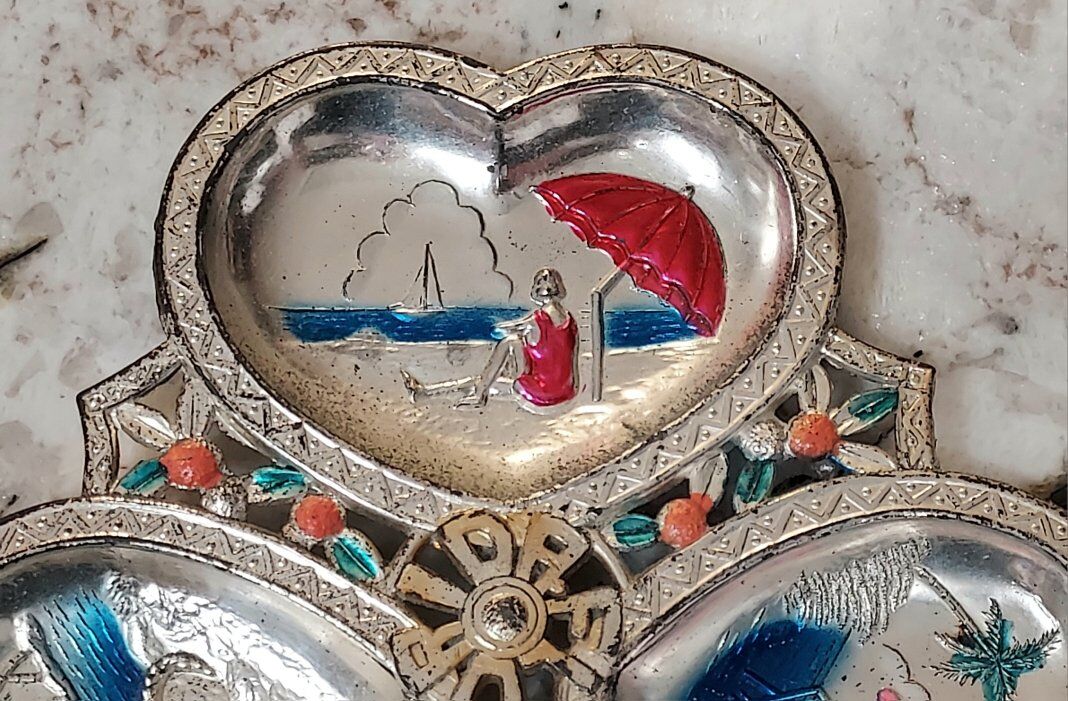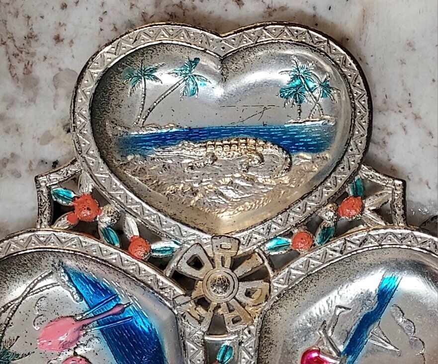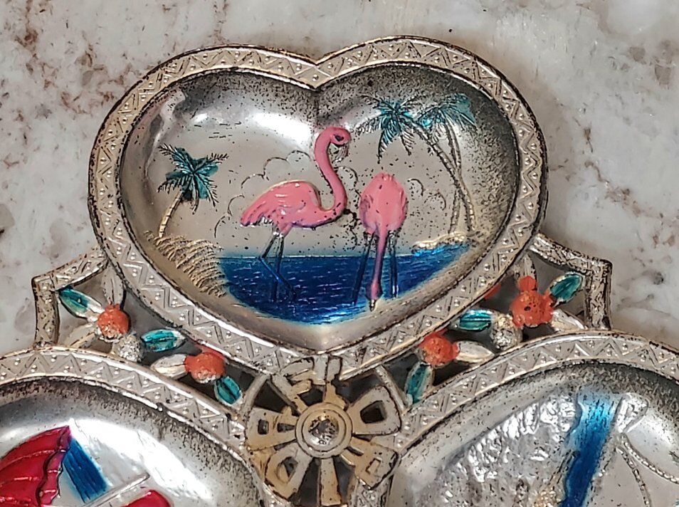 This is a metal souvenir ashtray from Florida. measures approx. 5" x 5". This particular one is super rare and very hard to find.