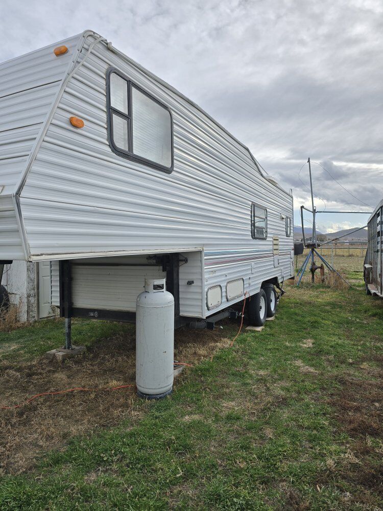 Venmo1998 5th wheel travel trailer can sleep 6 but sleeps 4 more comfortable. Fridge, stove, heater, AC, shower, water heater all work. no slide outs or generator. I have title in hand ready to go this is an awesome trailer for a family just starting out or a hunting trailer asking $4500 OBO text the wife she answers quicker 801 602 7743