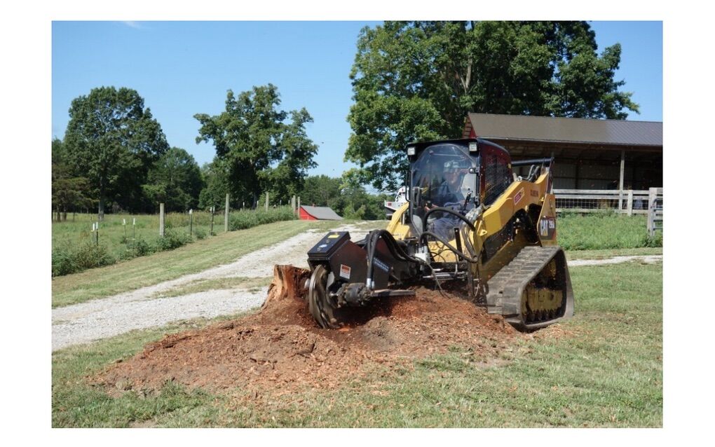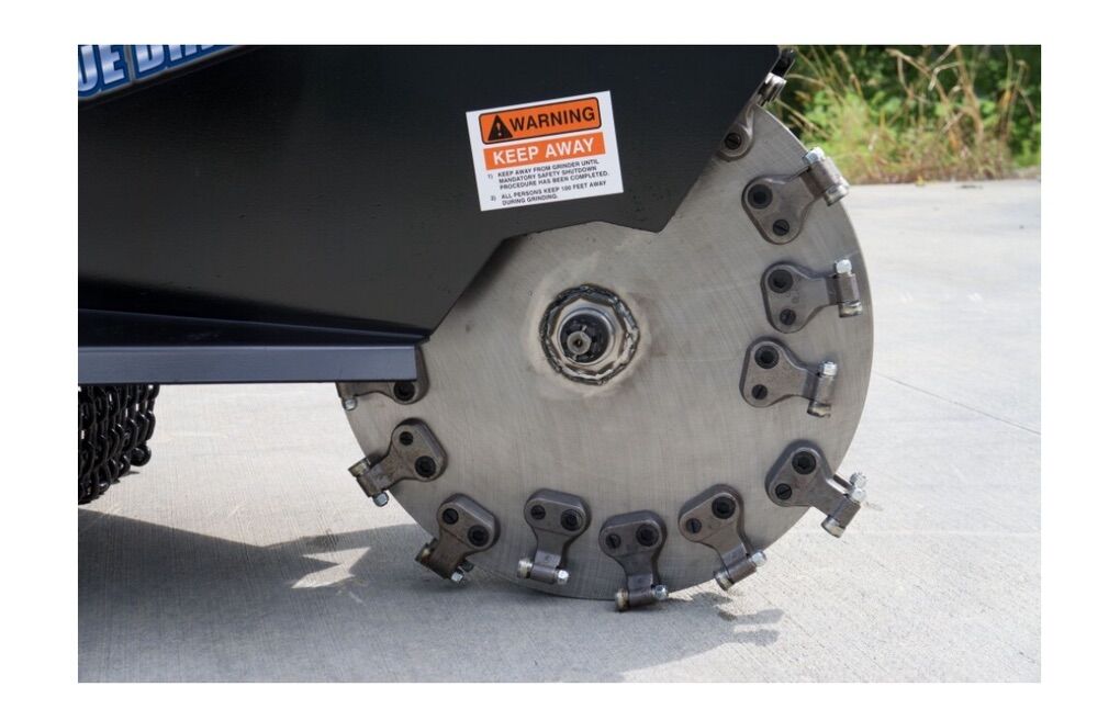The Blue Diamond® Skid Steer Swing Arm Stump Grinder is an incredibly effective tool for commercial stump grinding. Performance is equal up to a 75 HP dedicated stump grinder with its unique design. This model allows the host machine to remain stationary and can be operated using the OEM controls or a universal control box.