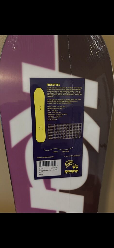 Kemper snowboard, Freestyle model. Brand New in the plastic, never mounted or ridden. This was released for is the 2023 / 2024 Winter season. Asking $195 now