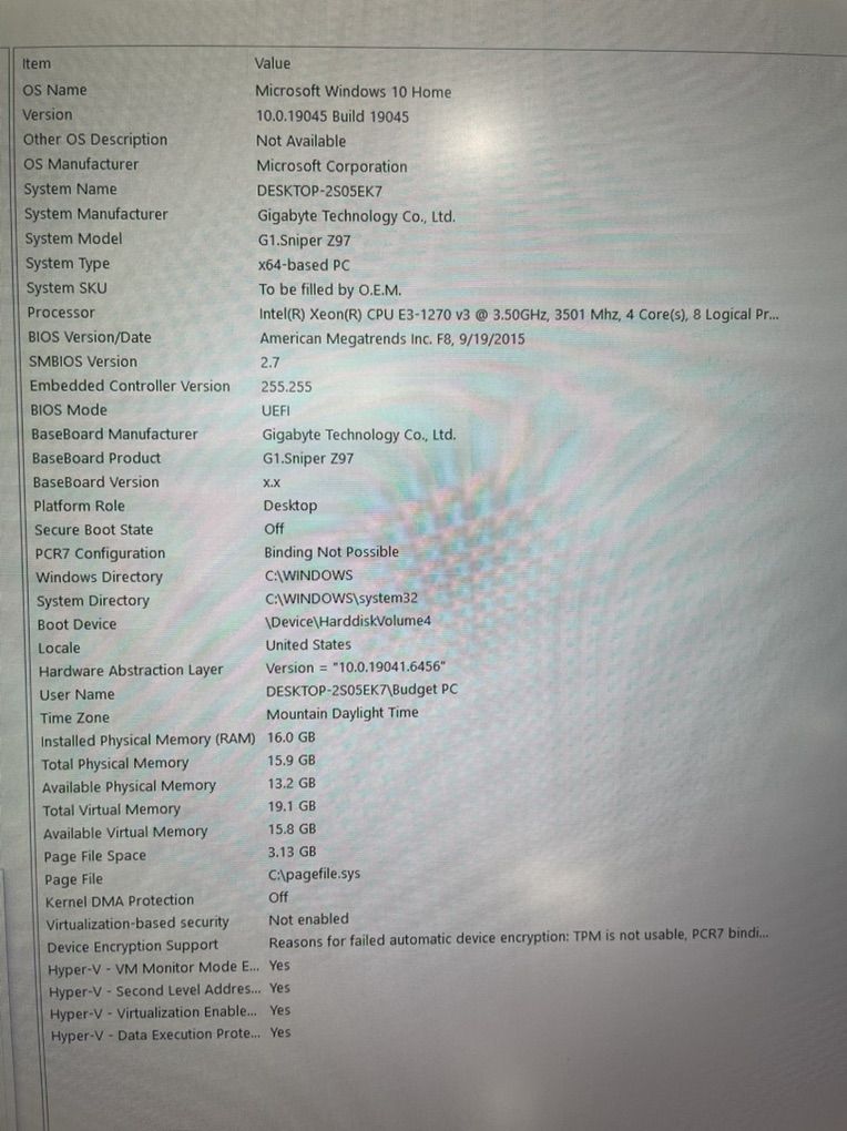 Specs: -Case Red Dragon case (new) -CPU: Intel E3-1270 V3 (Comparable to Ryzen 5 3500) -GPU: 1060 (6 GB) -RAM: 2 sticks of Rip-jaw Gaming ram (16 GB total) -SSD: 225 GB -HHD: 1tb WD blue -PSU: Corsair 550 Watt -Motherboard: Gigabyte Z97 G1 Sniper -OS: Fresh Install Windows 10 Pro activated (Cab Side install windows 11 and Activated with key if preferred) -Wifi and Bluetooth dongle wired and hidden in case with hub