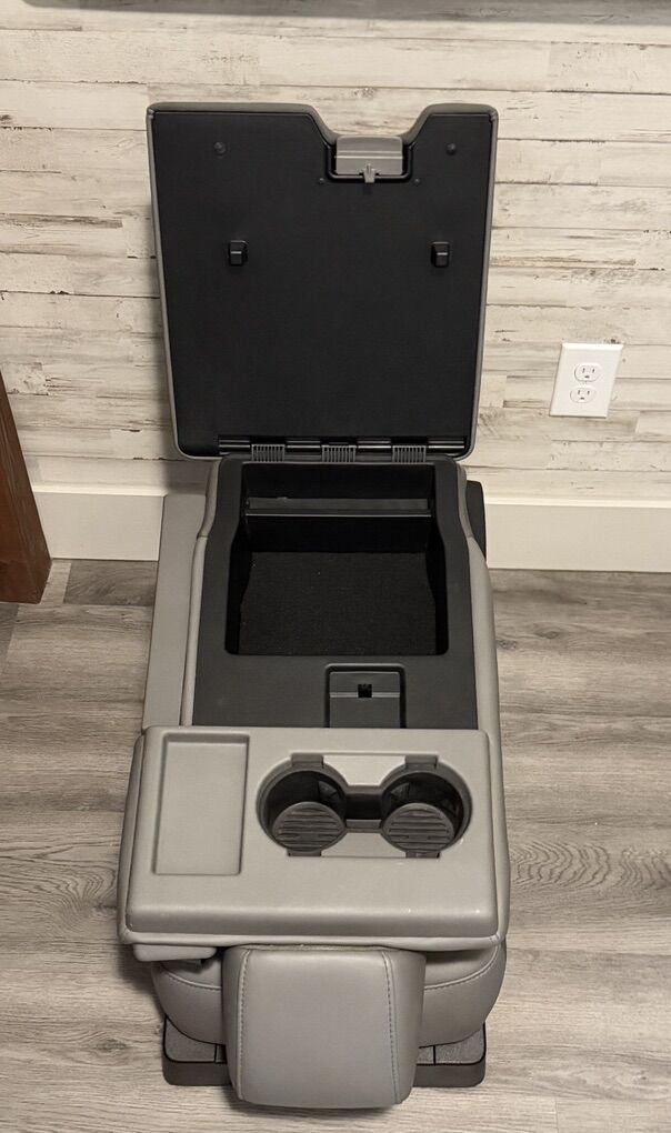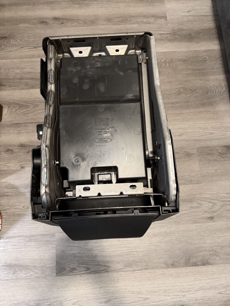 ApplePayCenter console out of a 2018 Super Duty F250 XLT. This console/ jump seat removed in 2018 when truck brand new to install professional radio equipment/ workstation. Console has been in storage for 8 years. It is as brand new but has a few scuff ups from storage. The armrest has minimal damage on rear corner. There are replacement covers available and replacement armrests available. Will fit other years and models- see part number on underside of console(pic). fits: 2017-2022 Ford Super Duty F250, F350, F450 and F550 with XL and XLT trims. May fit other Ford models and years.