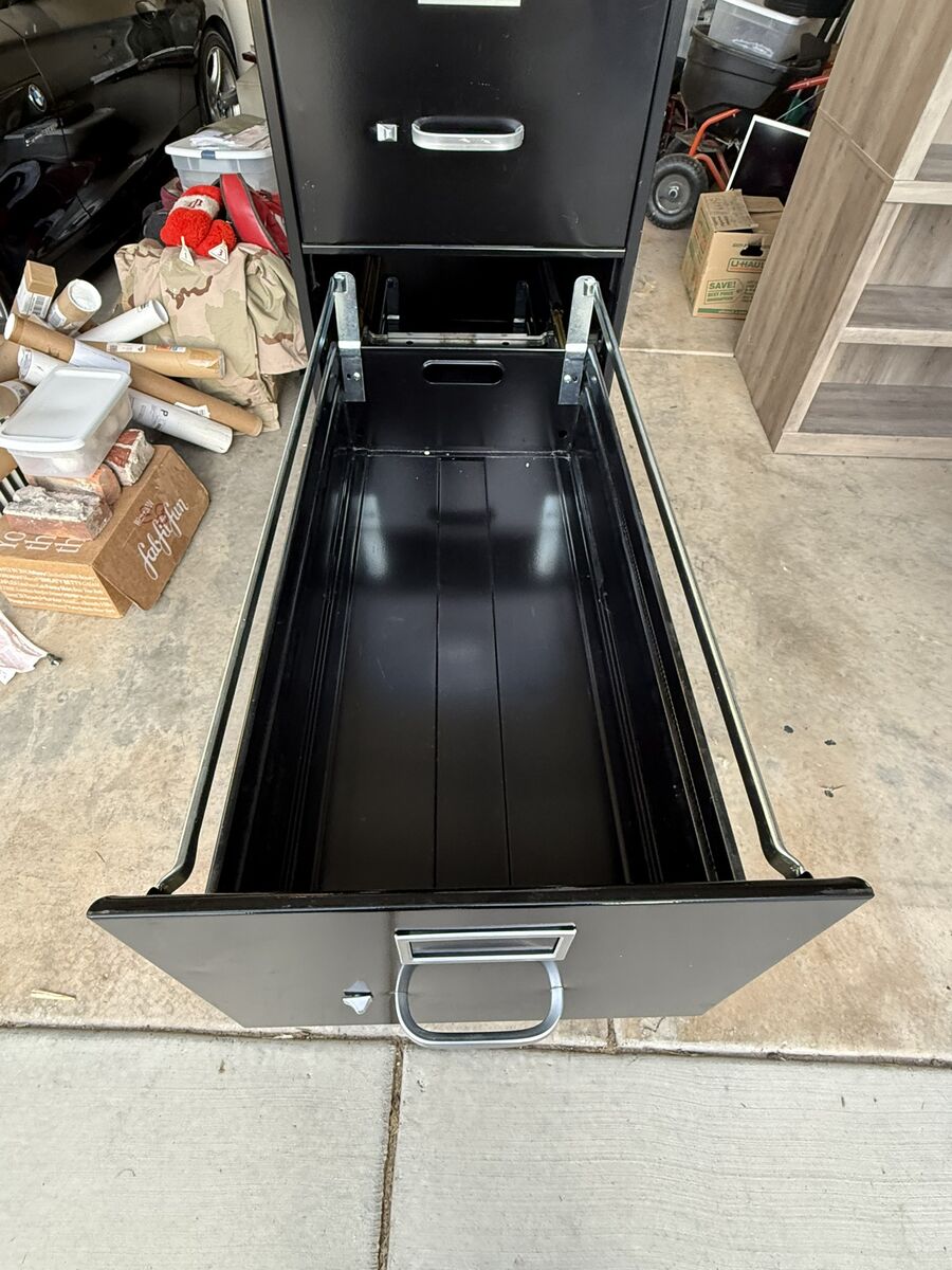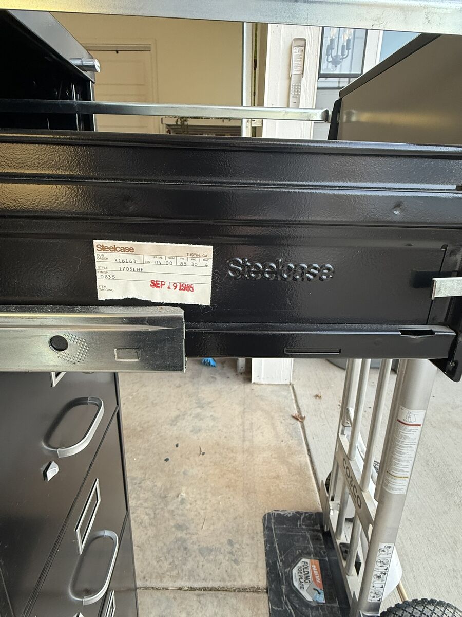 PayPalLocking Steelcase File Cabinet comes ready to hold hanging letter-sized files. Cabinet is in very good condition with wear consistent with age. Please ask any questions you might have. Rough dimensions are 52.5 tall, 15 wide and 28.5 deep.