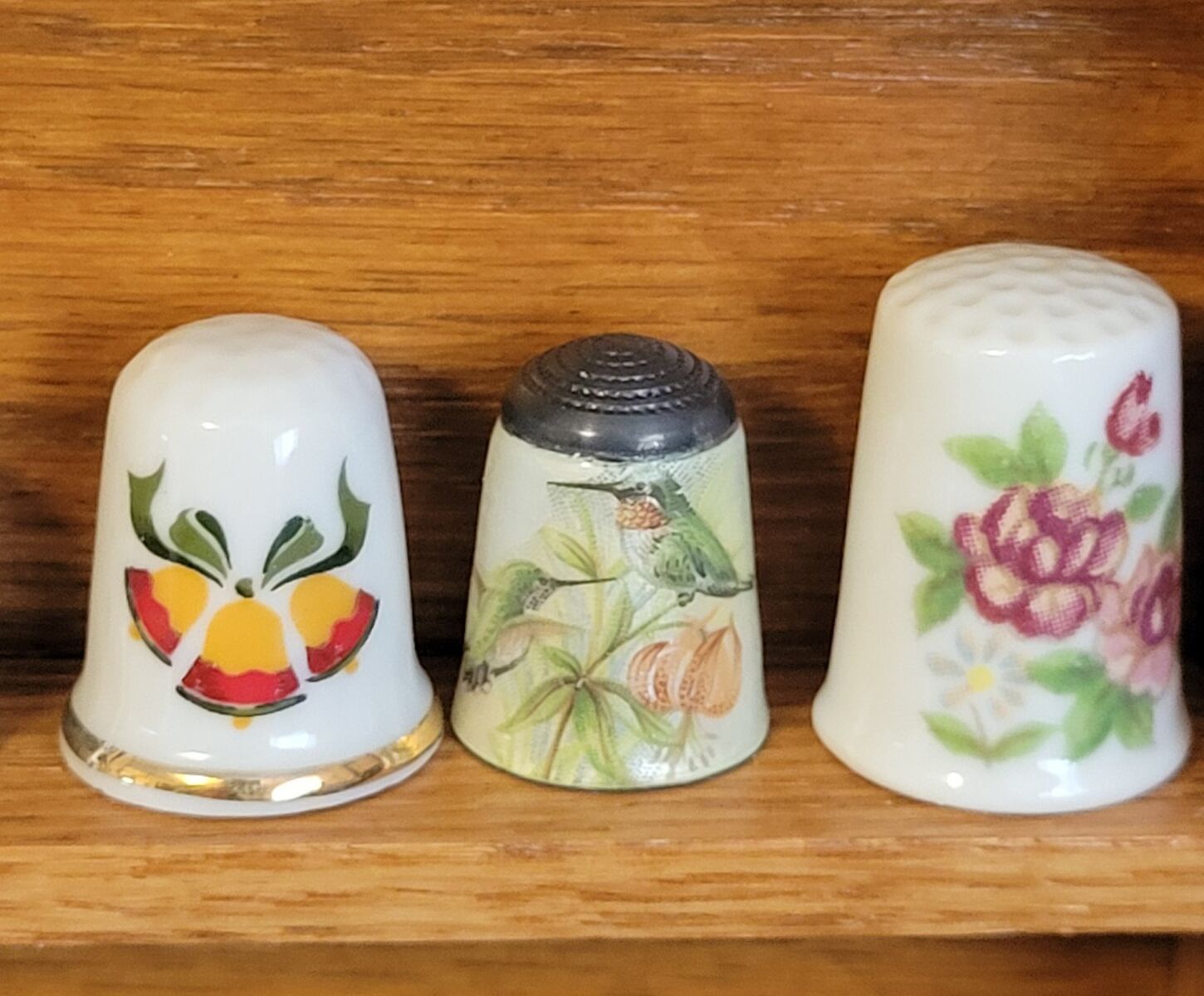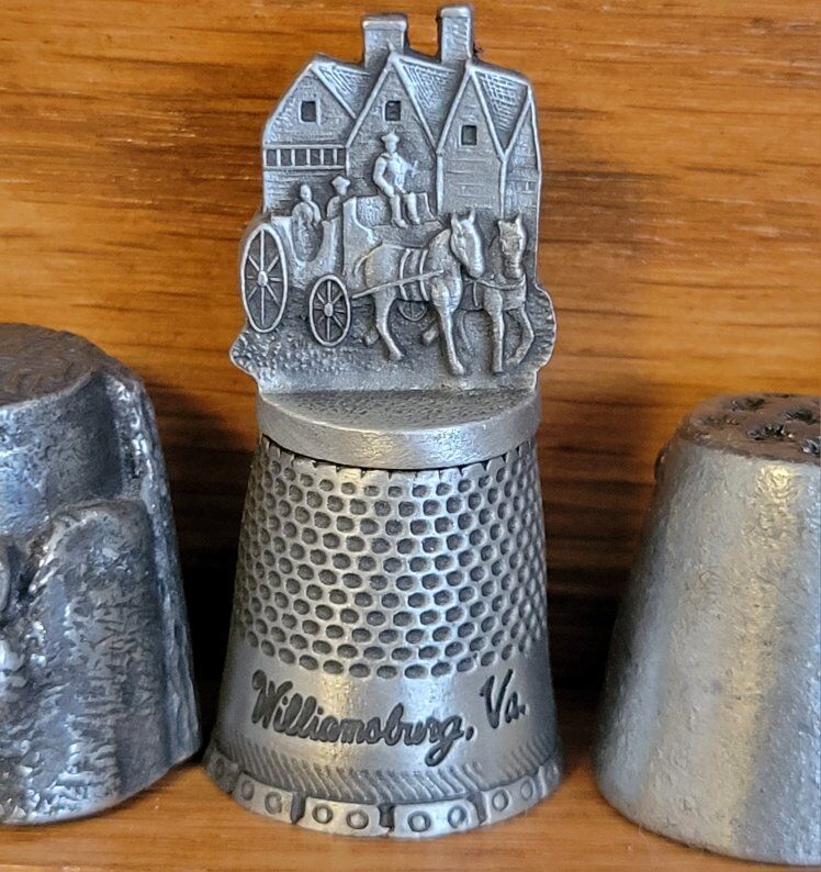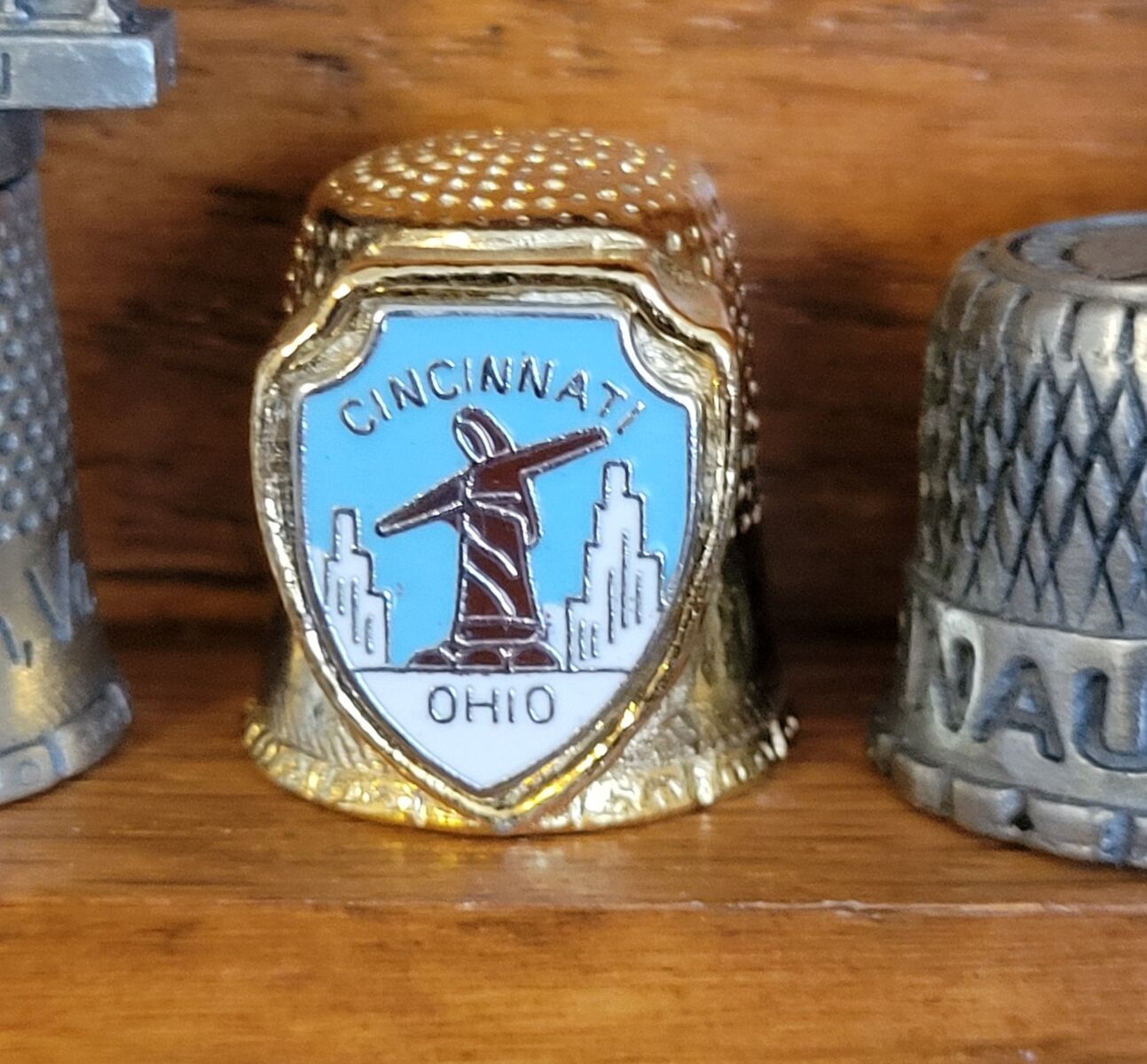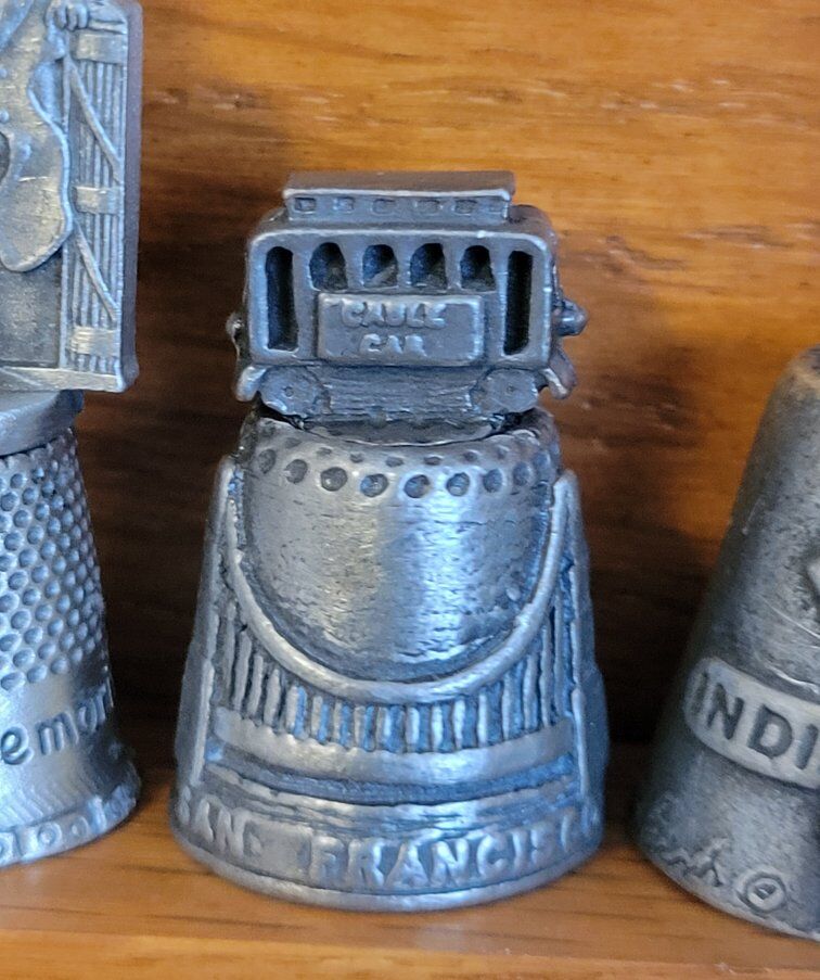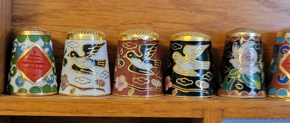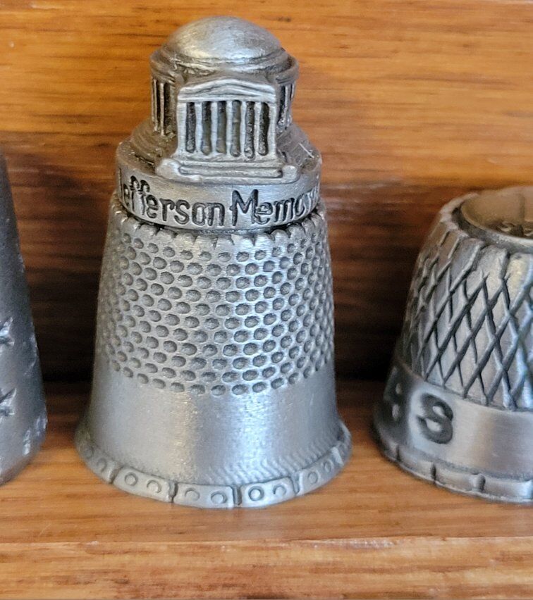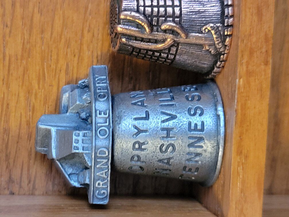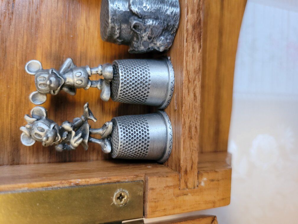 Large collection of thimbles in wood hanging case. 40 different thimbles some states, monuments and others.
