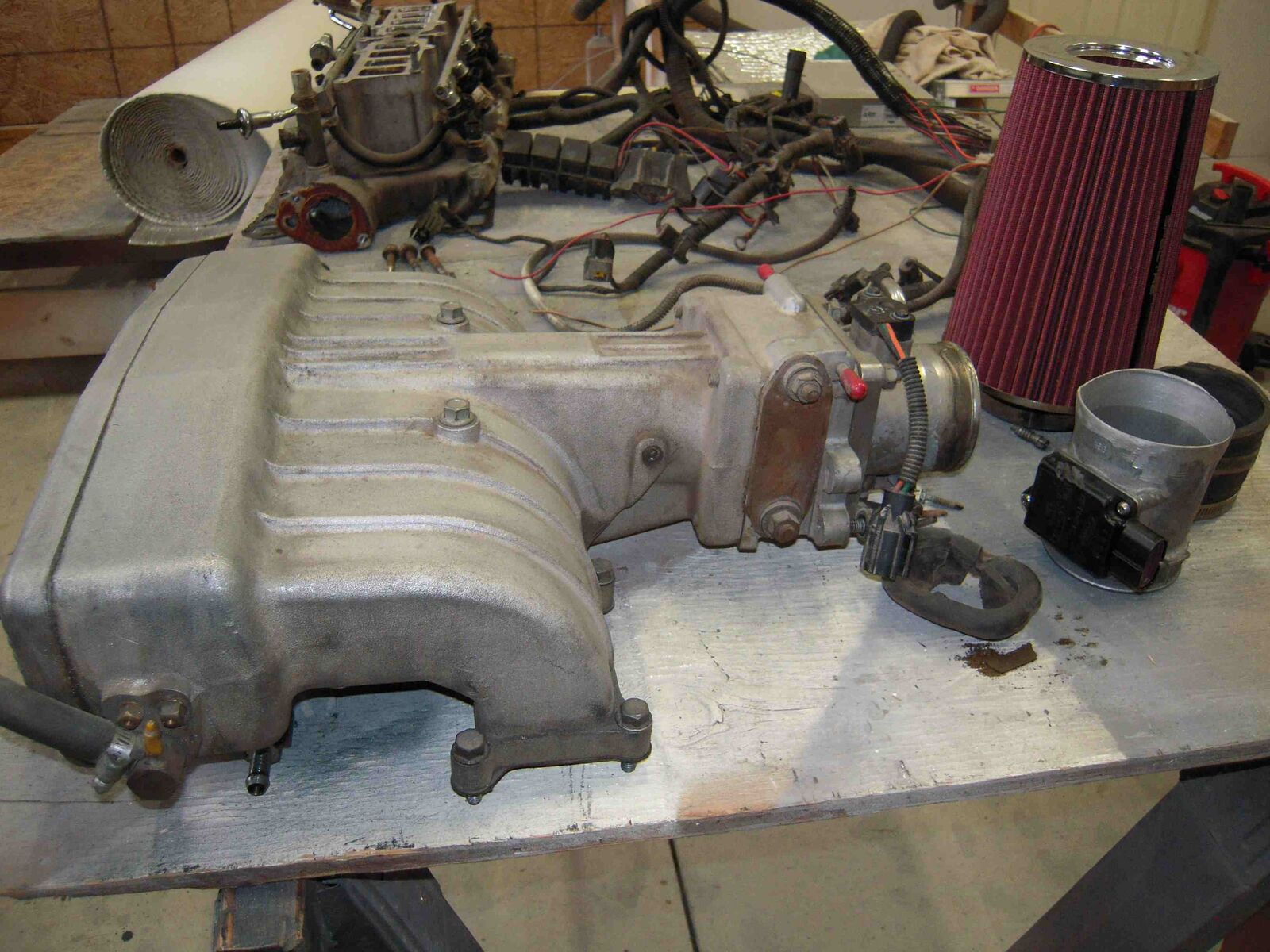 80mm MAF Meter, 5.0 Mustang Cobra Ford racing 24 LB Blue Top Injectors. I was told it is an Edelbrock Manifold but unable to find any markings to prove it. It looks more like a Trick Fow manifold to me.