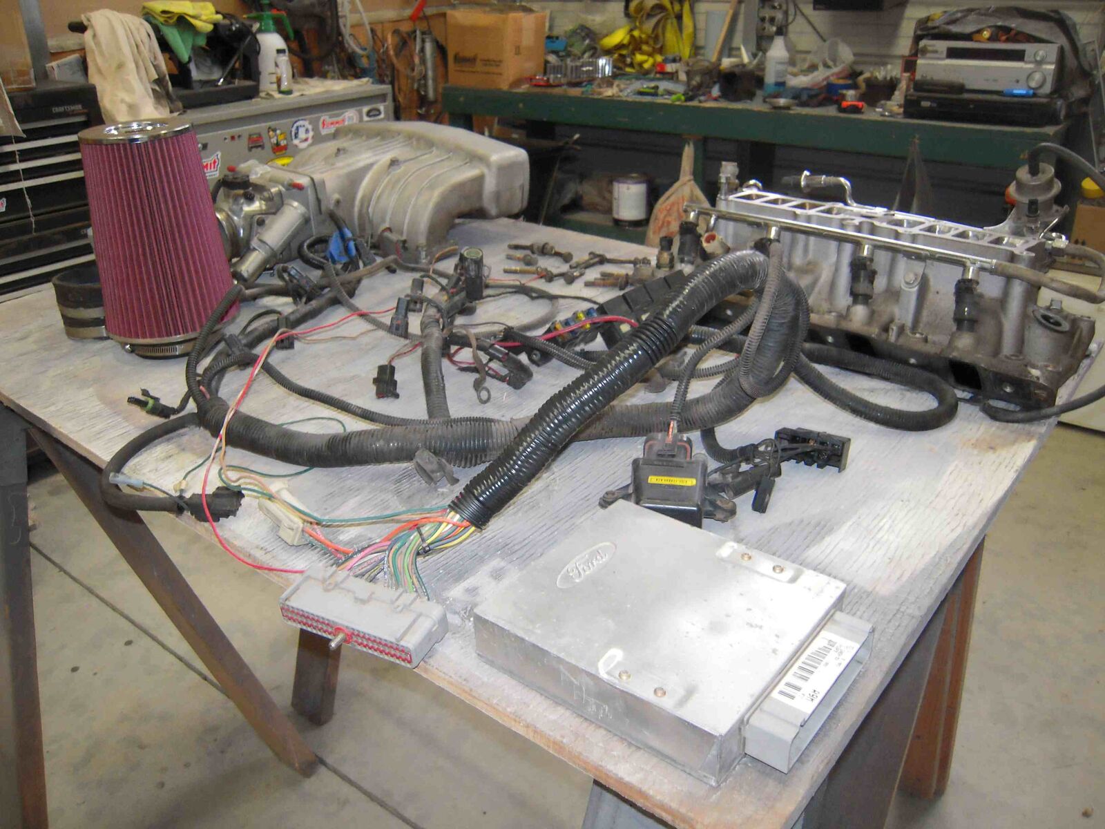 – EFI 5.0 Ford Mustang Computer, with Fuel Rails and New Air Filter.