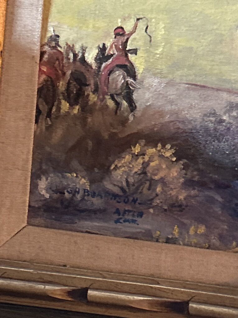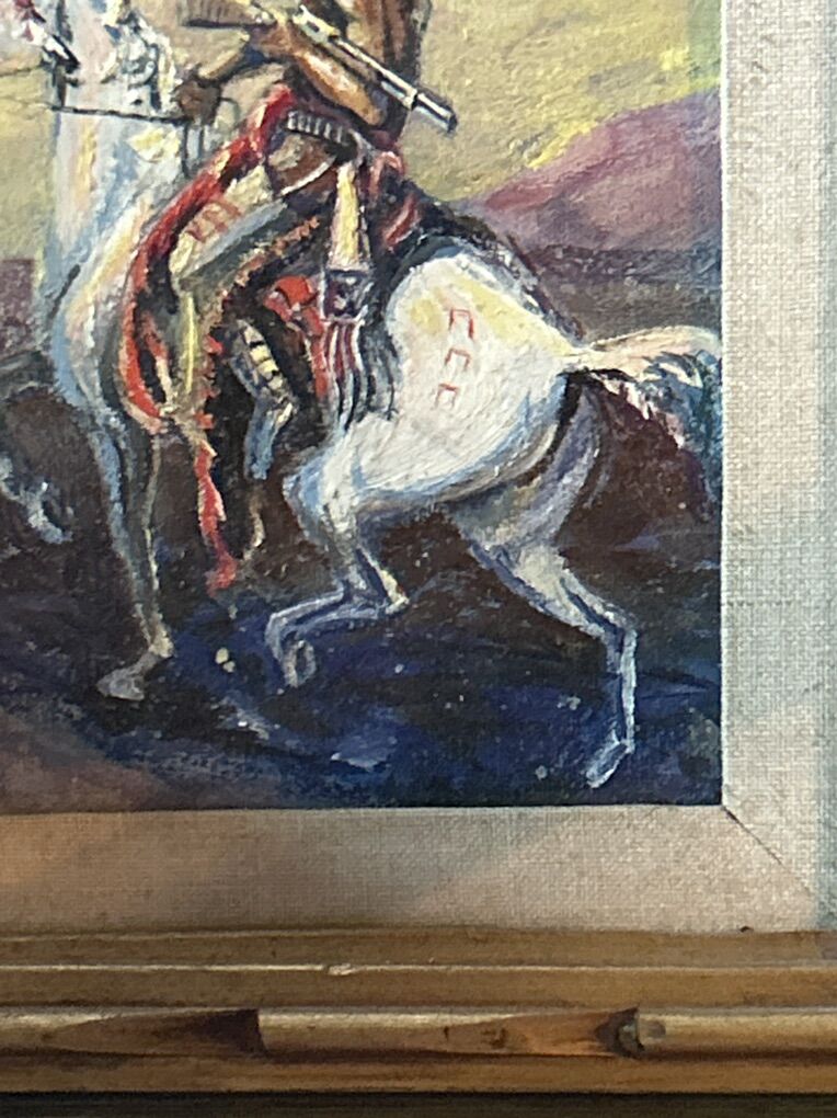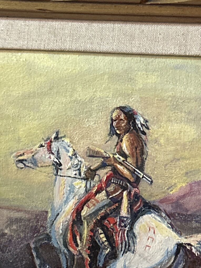 Beautiful Oil On Panel Painting Of Native Indian. After C M Russel. Frame size is 18x16 inches
