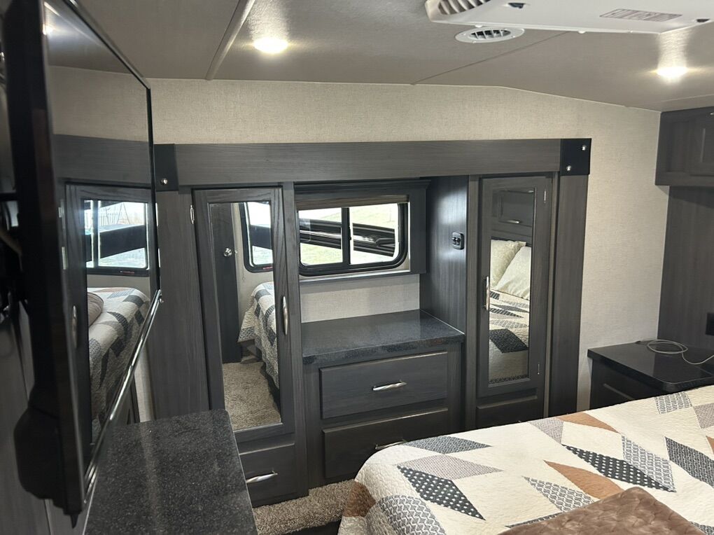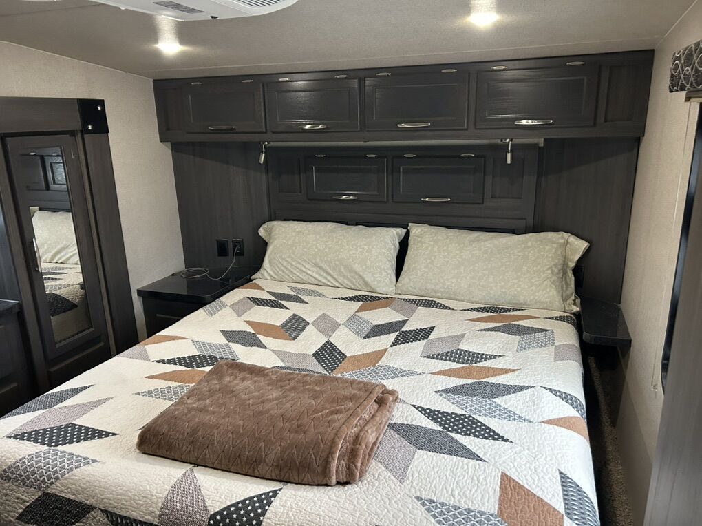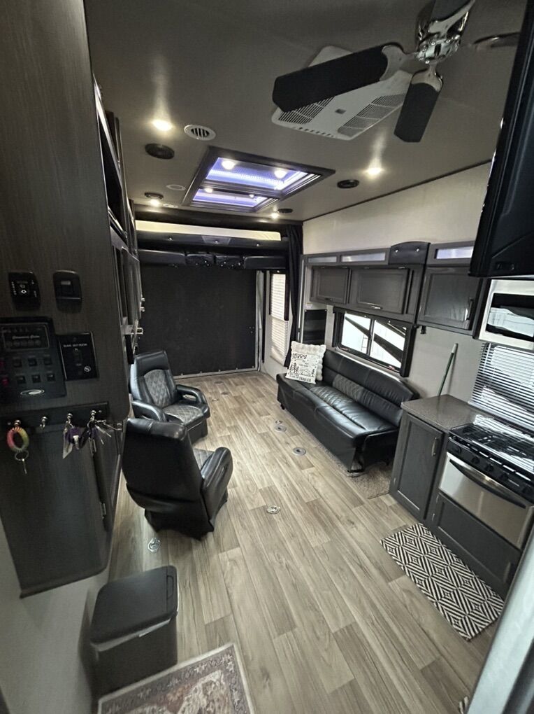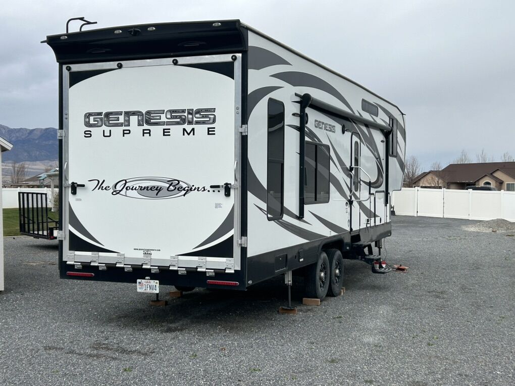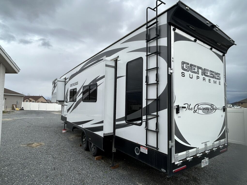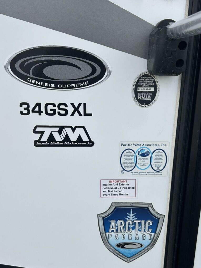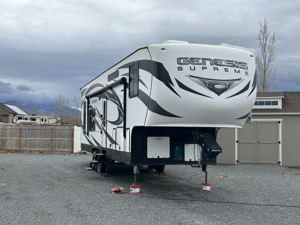 2019 Genesis 34GSXL. Residential fridge and King size bed. 160 gallon fresh water tank and a 30 gallon fuel station that also runs Gen. Auto leveling system. Solar panels with inverter that runs everything but microwave and air conditioning. Gen has 114 hrs. Trailer is in great condition and ready for all your camping adventures.