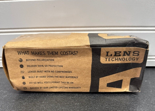 This listing features a pair of Costa sunglasses equipped with the advanced 580 lens technology, designed to enhance your outdoor experience. The sleek, black frame offers a modern look, providing both style and functionality. Included is a lightweight, protective carrying case, ensuring your sunglasses remain safe and secure when not in use. The case features the iconic Costa logo, emphasizing the brand's commitment to quality. Perfect for outdoor enthusiasts, these sunglasses are engineered to provide exceptional clarity and reduced glare, making them ideal for any adventure. Whether you're on the water or enjoying a sunny day, these Costa sunglasses are a reliable companion.